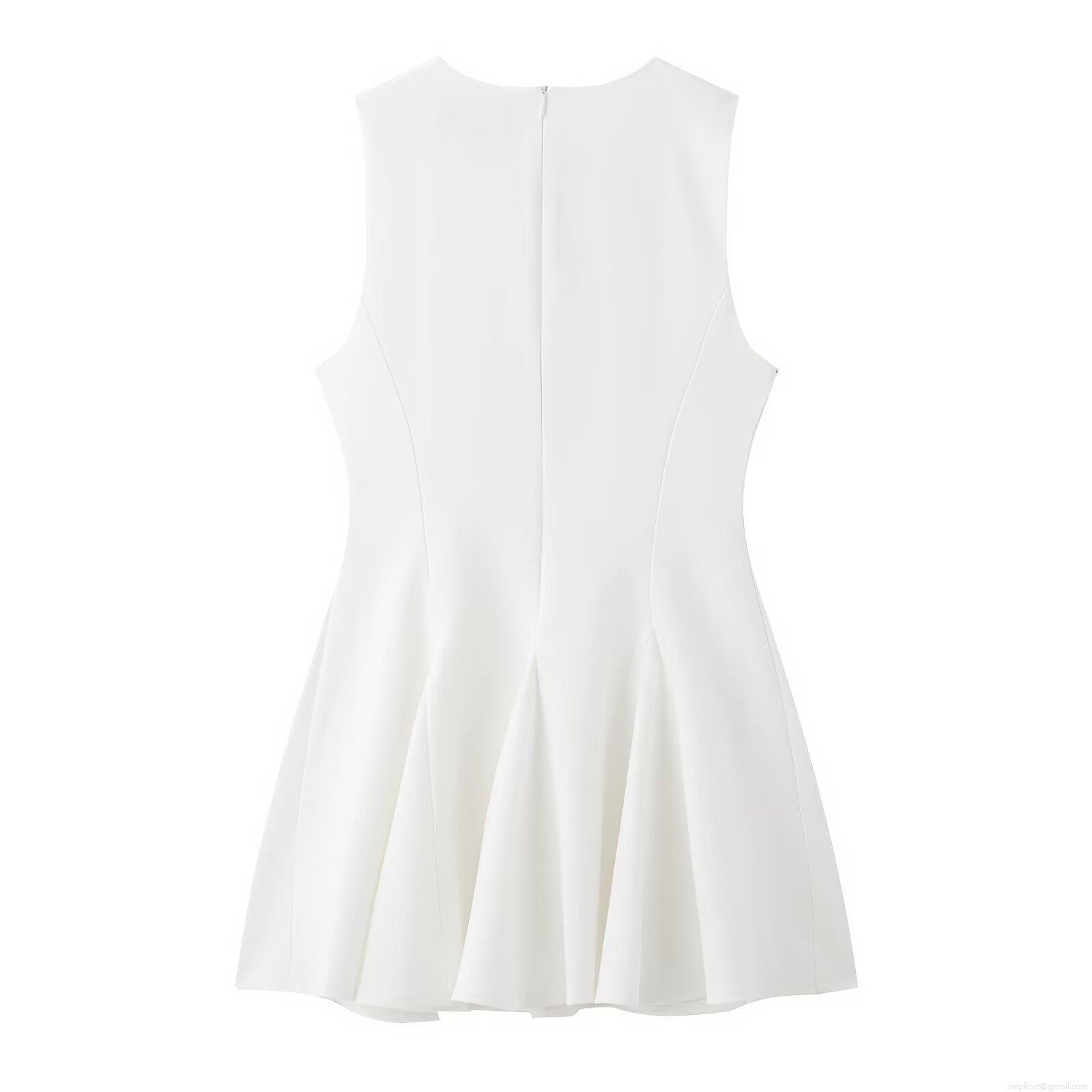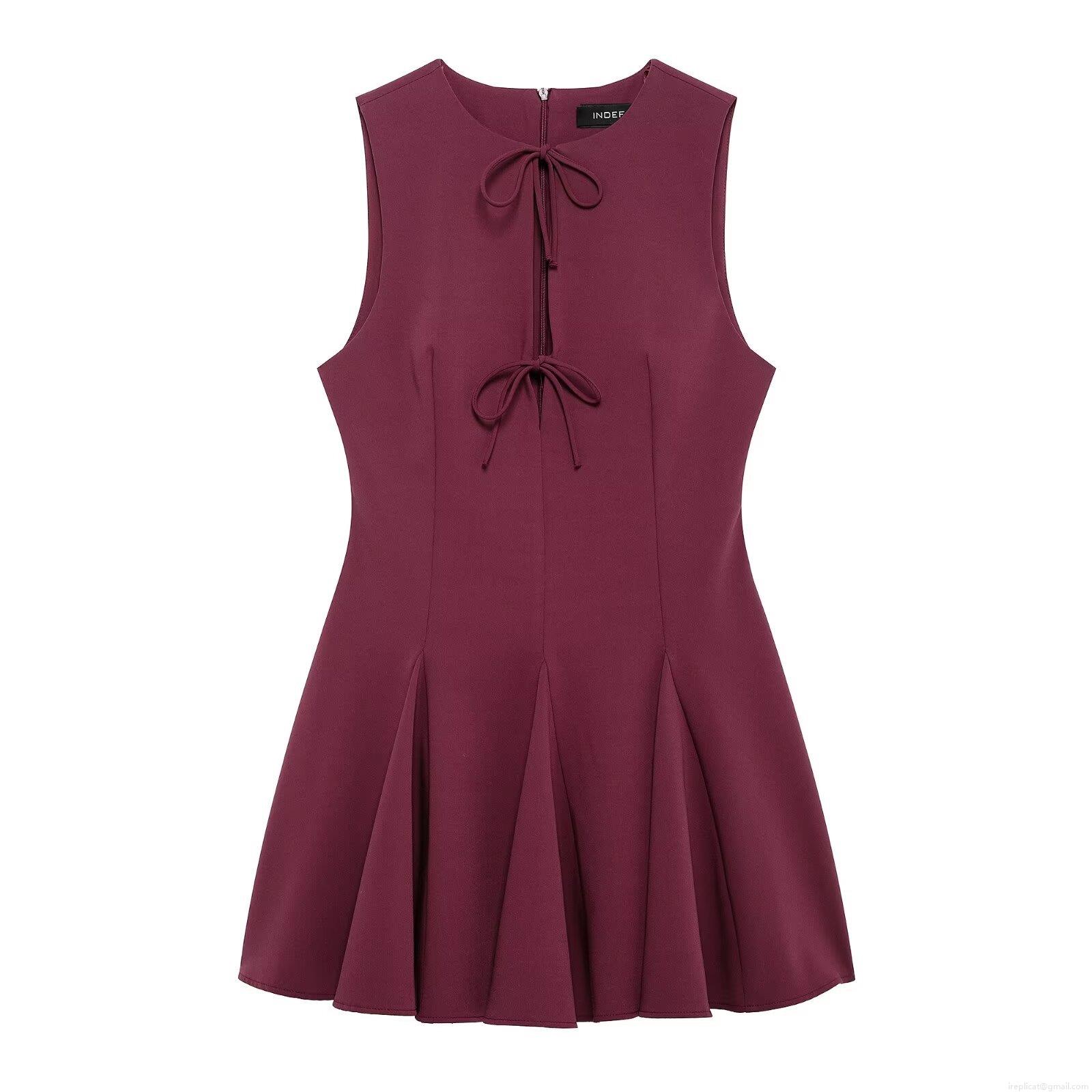 • Women's Elegant Hollow Bow Tie Sleeveless Pleated Mini Dress Regenerated Cellulose Fiber Wool Blend A-Line Dress For Party Streetwear Summer Dating
