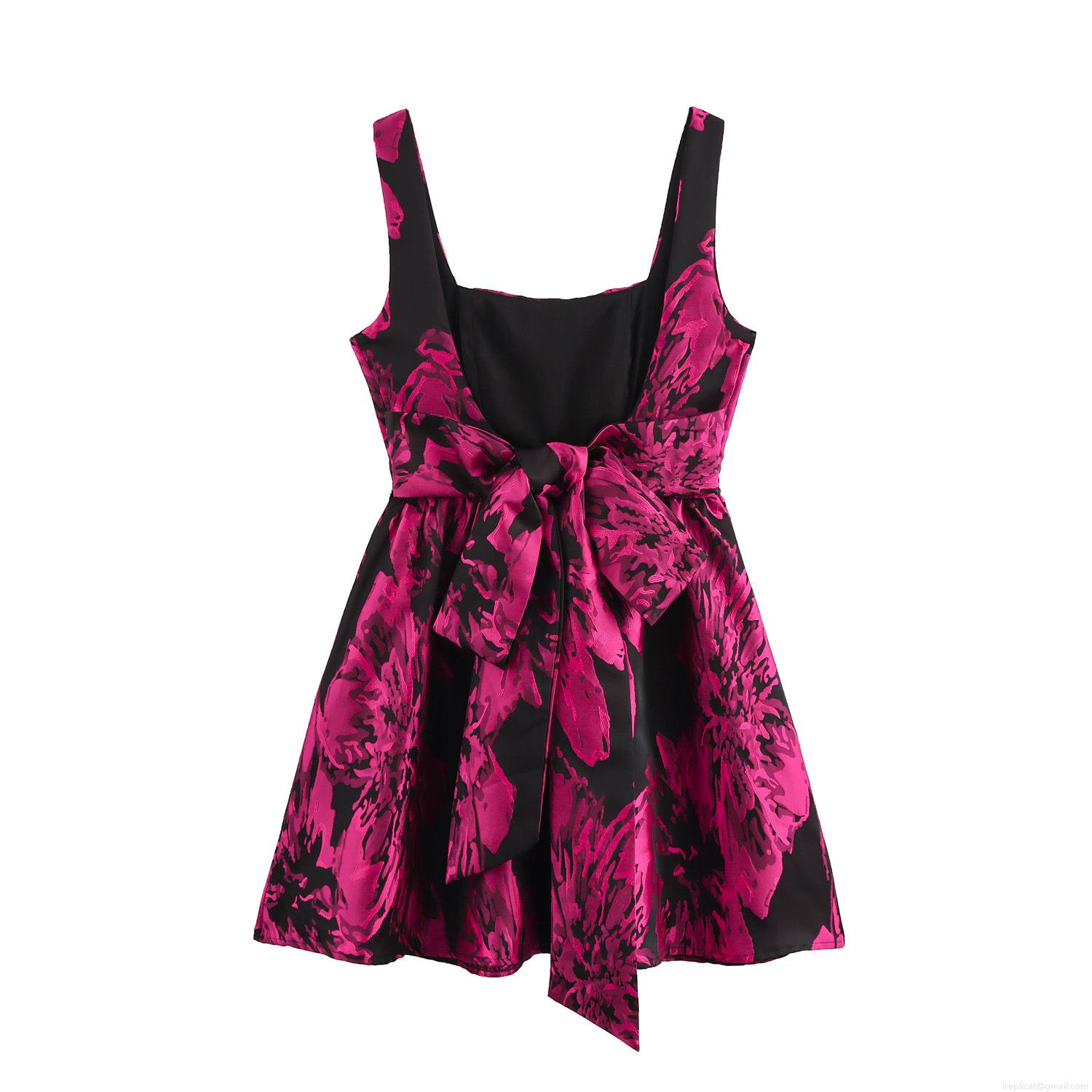 • Women's Elegant Jacquard Floral Mini Dress Square Neck Backless With Big Bow Sleeveless A-Line Short Dress For Party Club Dating Summer Sweet Style