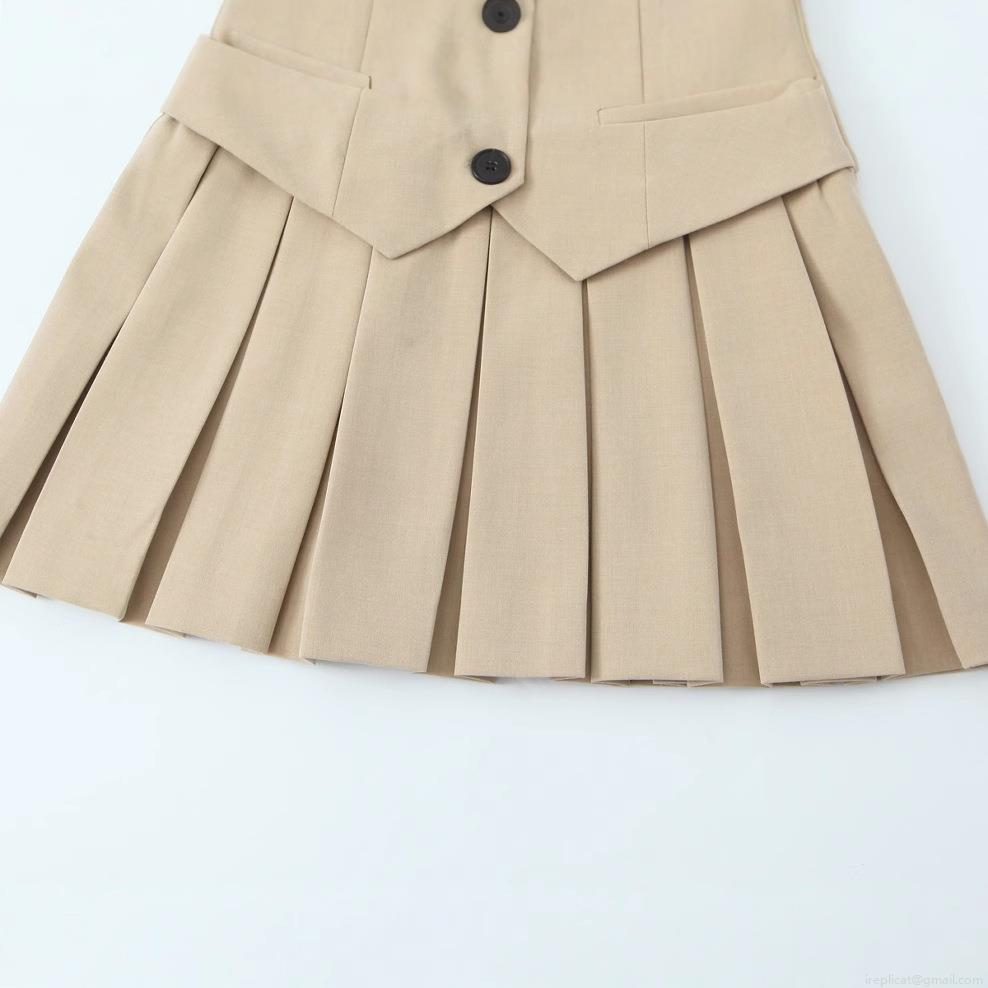 • Women's Elegant Khaki Sleeveless Blazer Collar Pleated Dress Fashion V-Neck Vest Style Mini Dress for Party Office Dating Summer