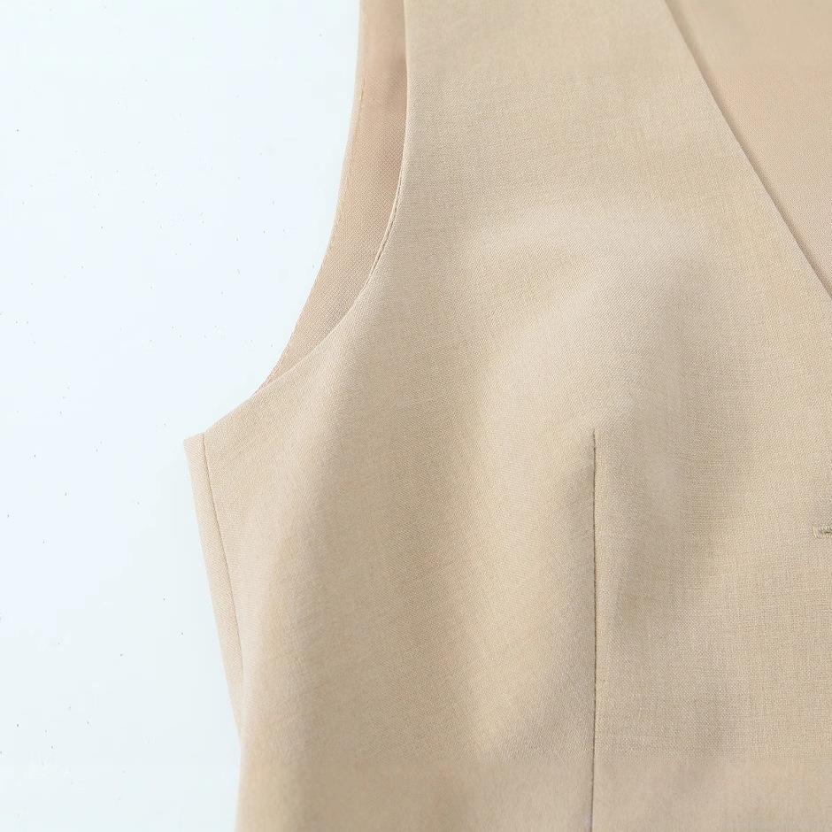 Solid Color, Pleated Design, Suit Collar, Black Button Decoration, Vest Style
