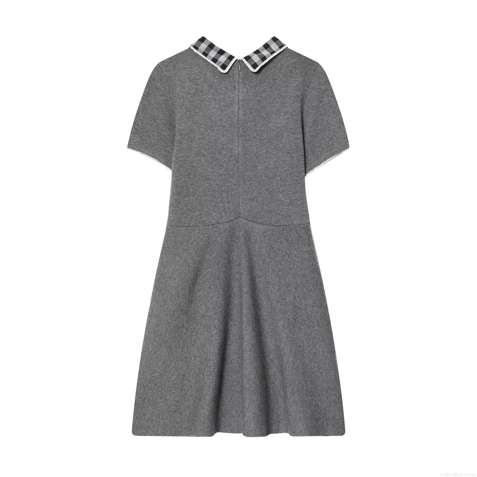 Women's Elegant Knit Short Sleeve Dress With Checkered Peter Pan Collar Vintage A-Line Casual Mini Dress For Party Daily Wear