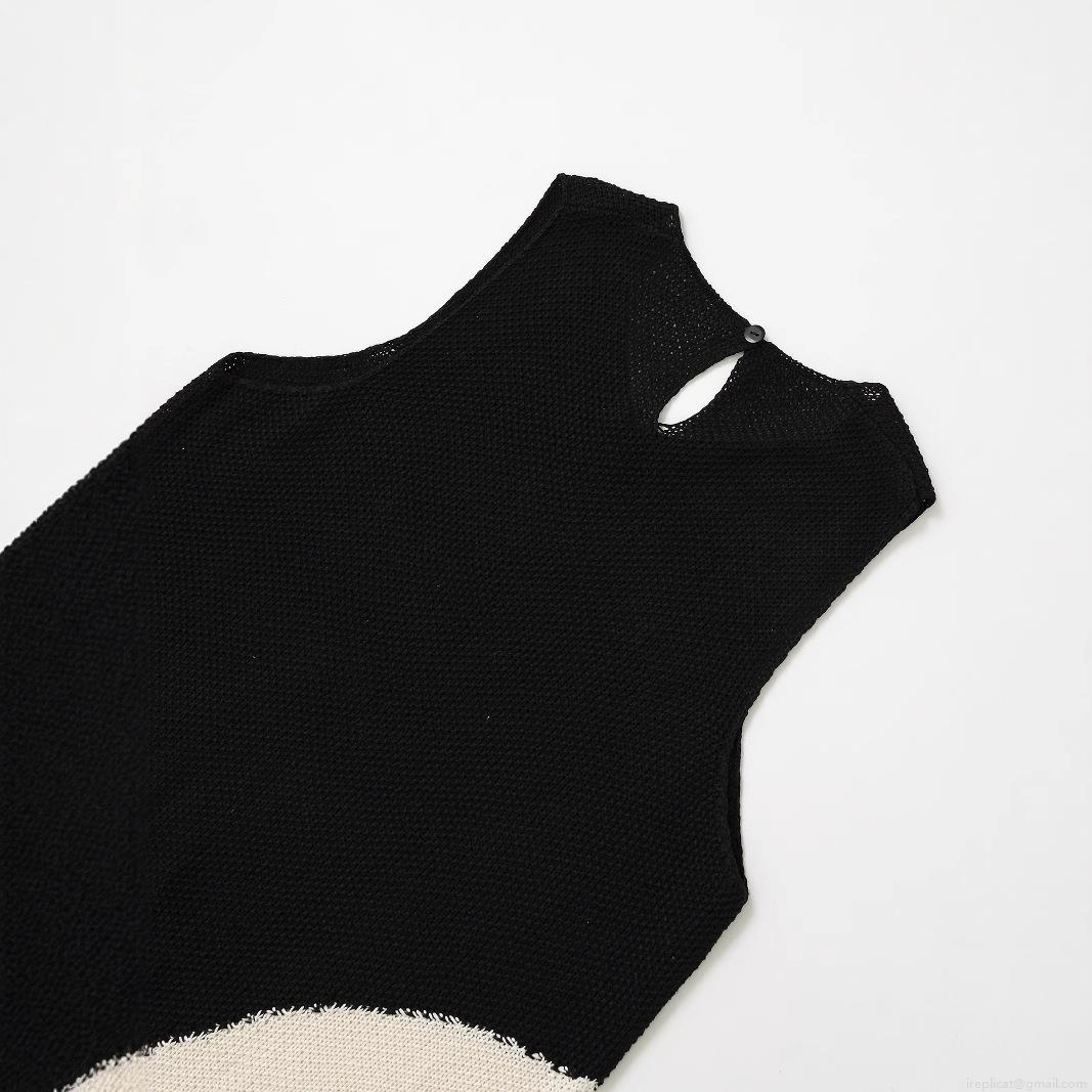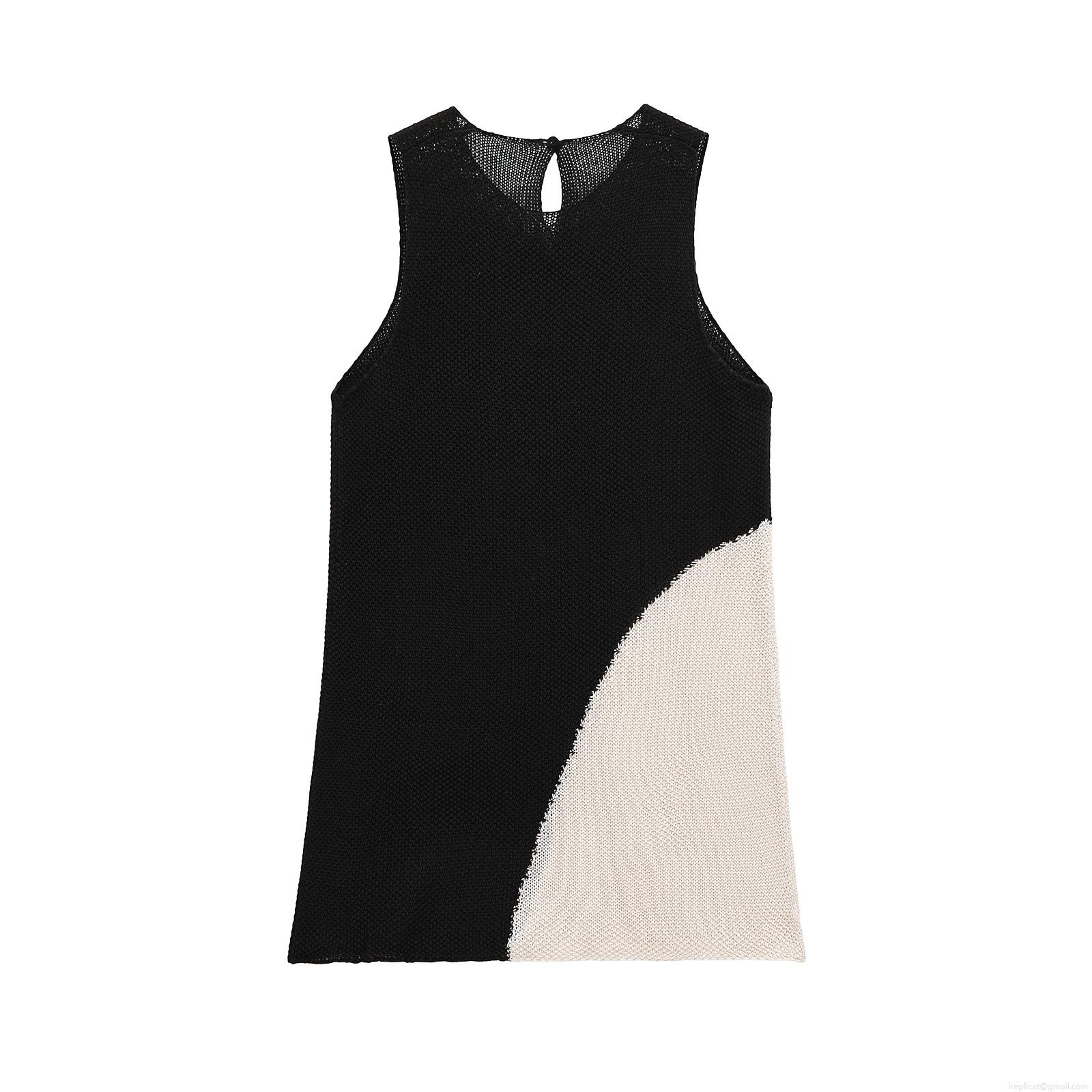 • Women's Elegant Knitted Color-block Mini Dress Sleeveless Round Neck Patchwork Straight Dress For Party Casual Streetwear Socialite Style Black White