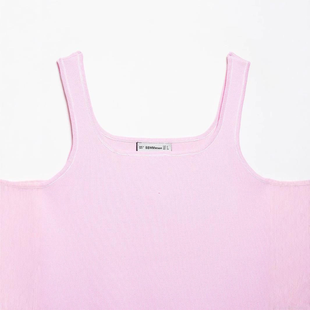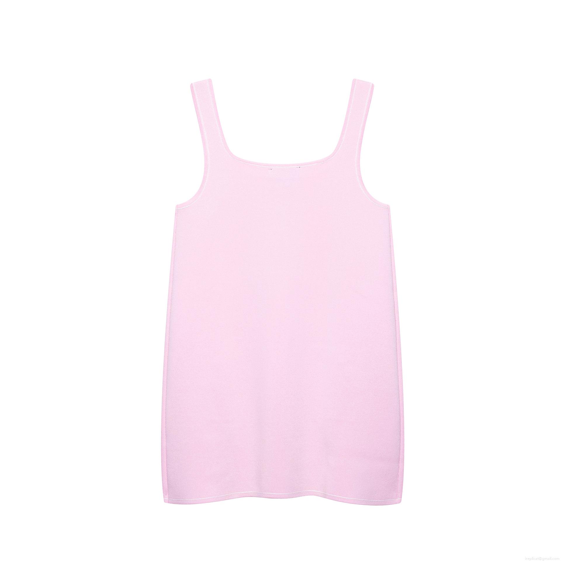• Women's Elegant Knitted Mini Dress Square Neck Sleeveless Backless Solid Pink Sundress With Gold Buttons And Pockets For Summer Party Date Night Fashion Clothing