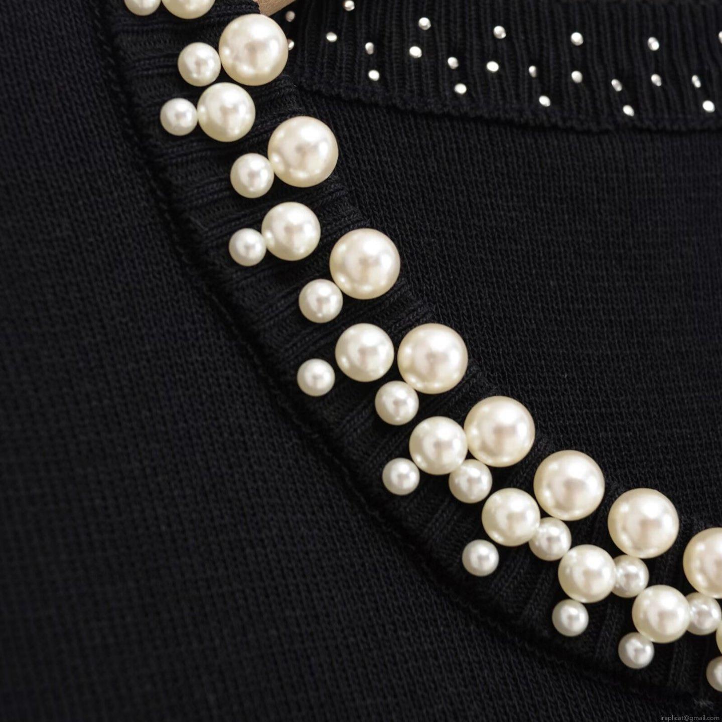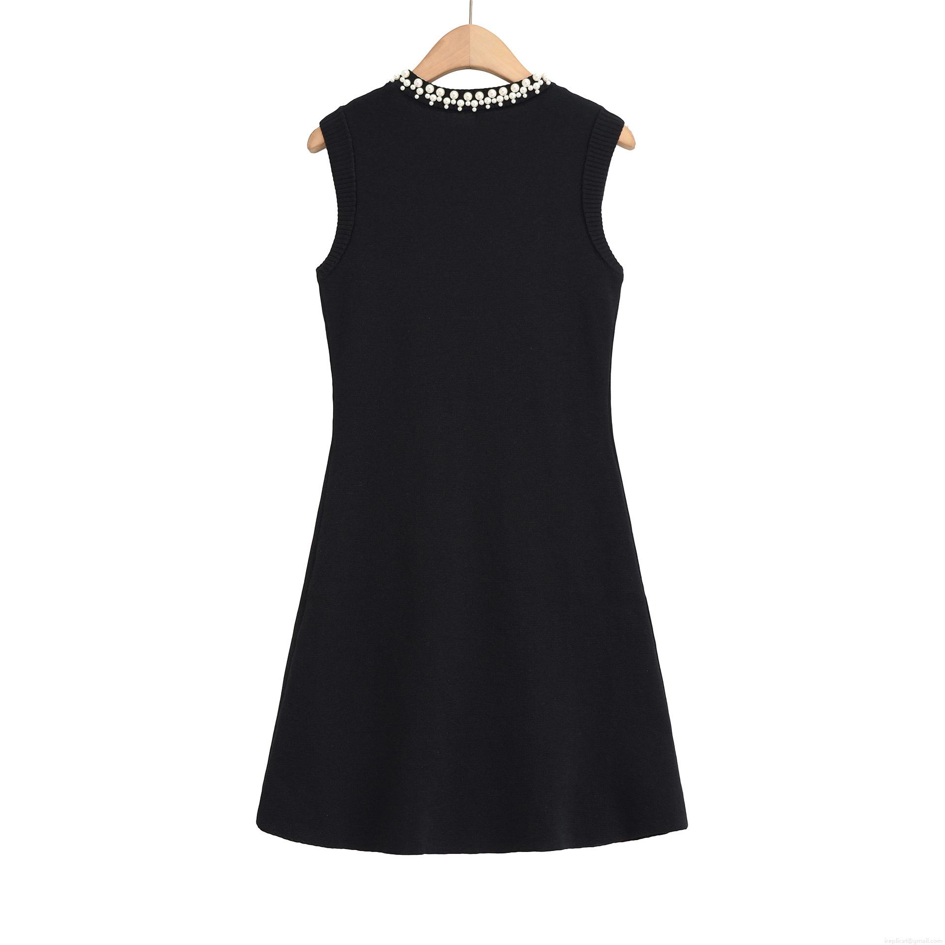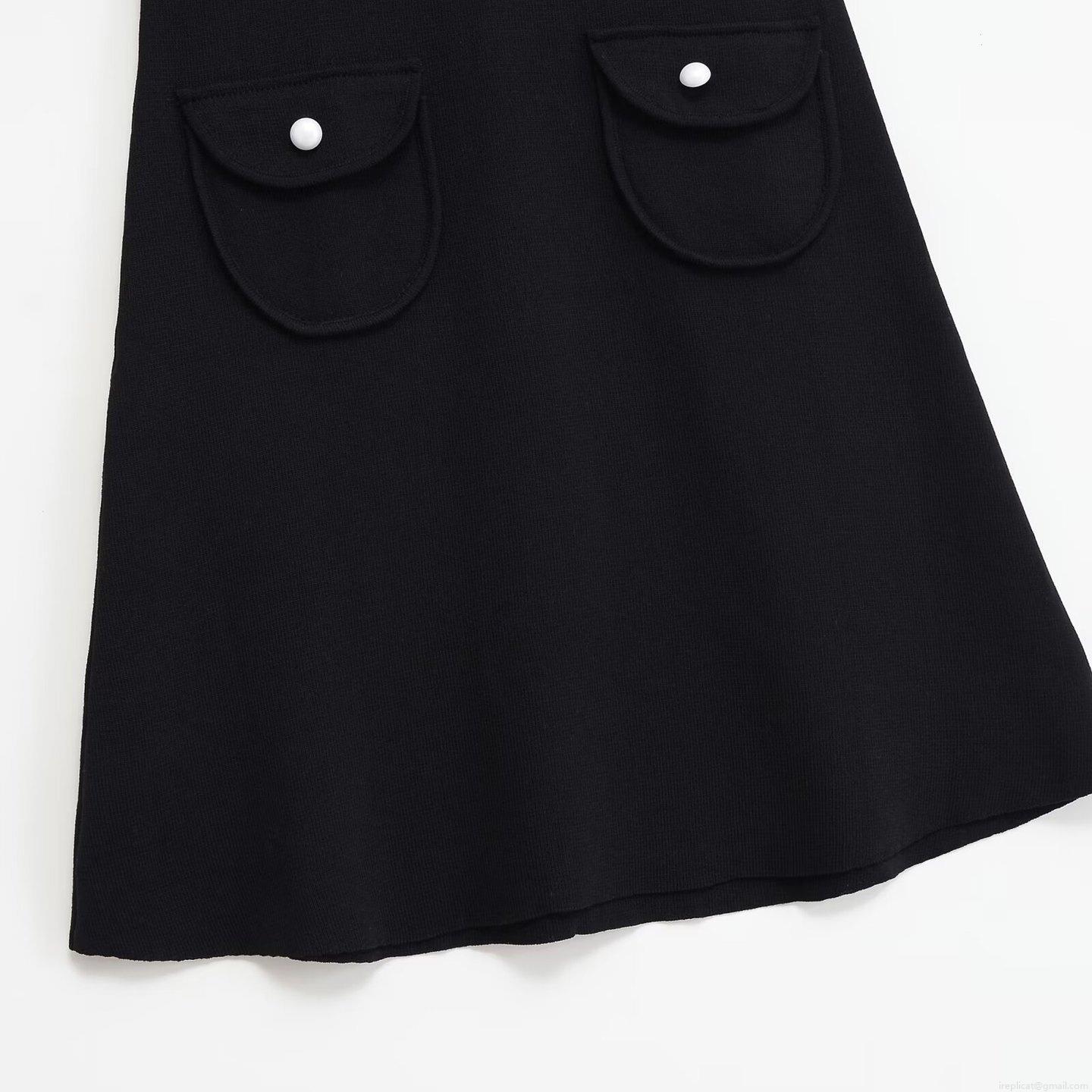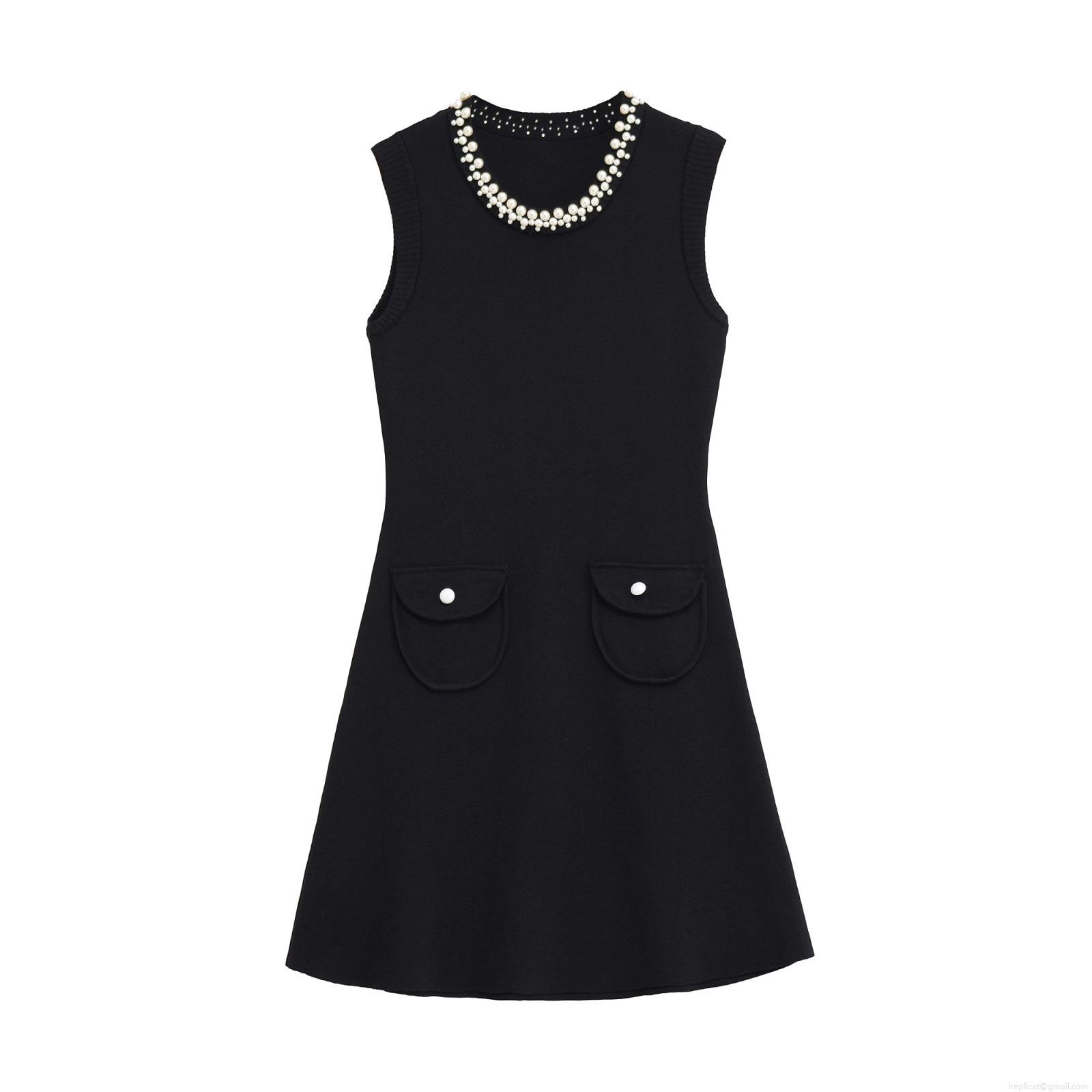 • Women's Elegant Knitted Sleeveless Mini Dress With Pearl Beaded Round Neck Viscose Nylon Knit A-Line Short Dress With Dual Pockets For Party Ladies Black Dress