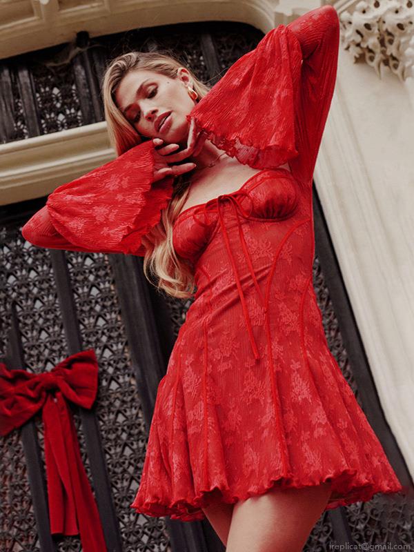 Jacquard, Ruffles, Lace, Backless, Lace Floral, Bell Sleeves