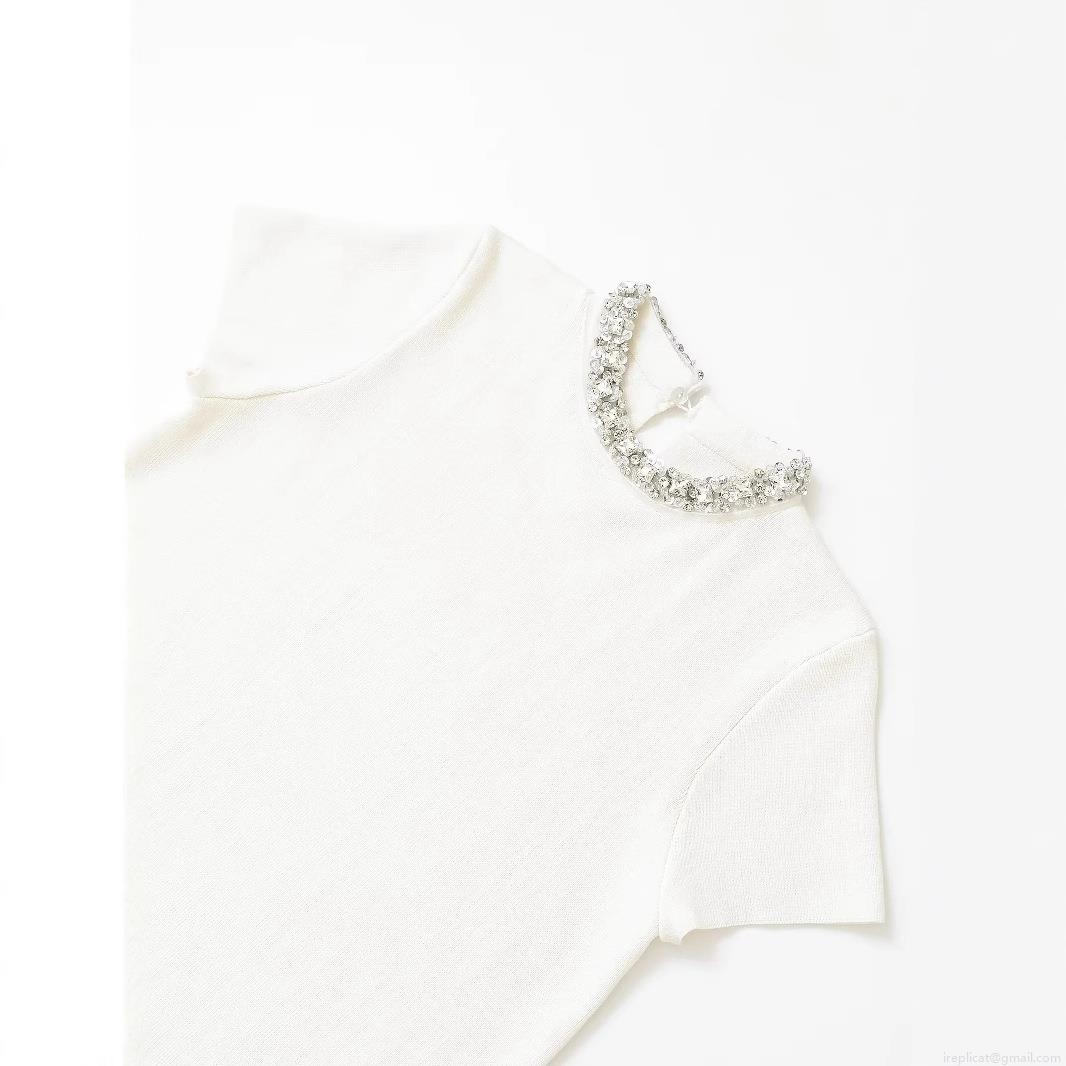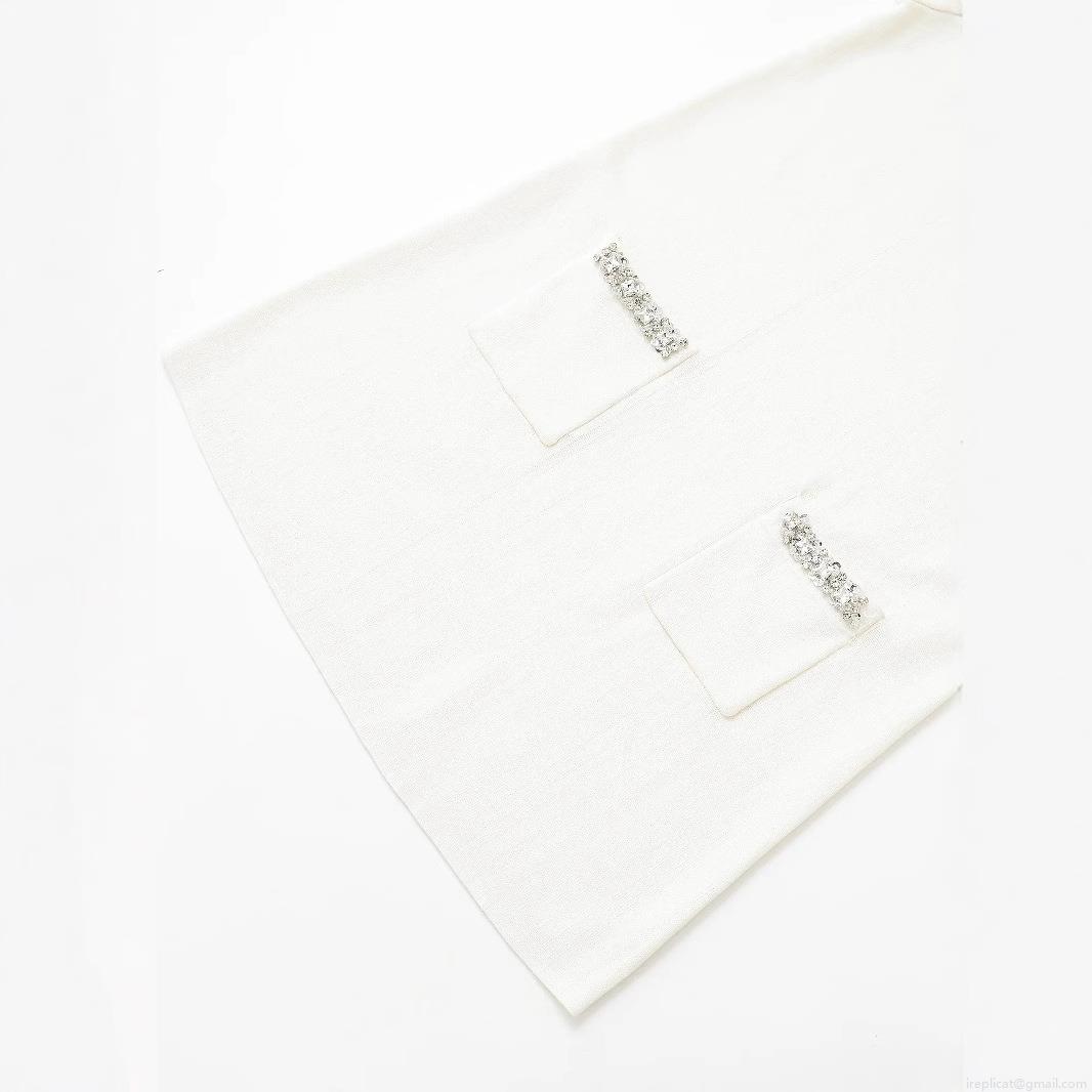 Women's Elegant Mercerized Cotton Short Sleeve Dress Heavy Rhinestone Beaded Pocket Detail A-Line Mini Dress For Party Banquet Celebrity Style
