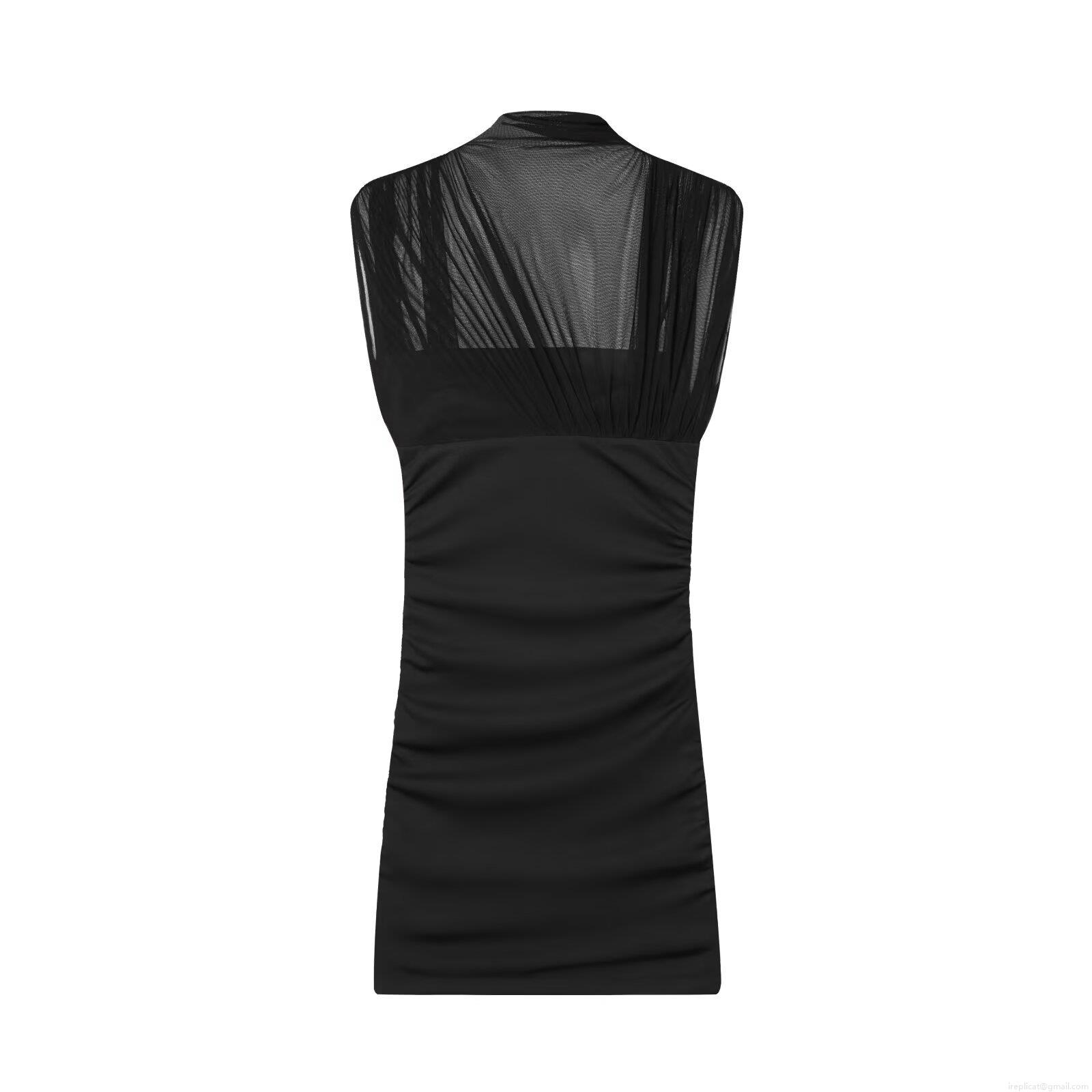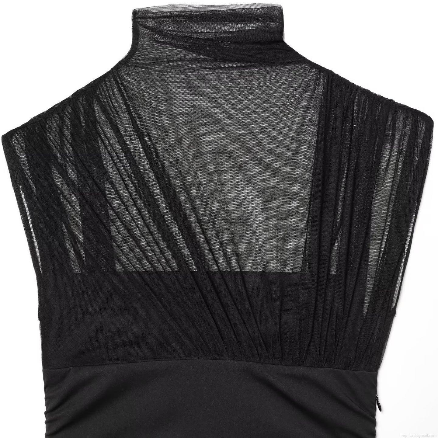 Women's Elegant Mesh Stitching Ruched Mini Dress Sexy Semi High Neck Sleeveless Bodycon Short Dress For Party Dating Clubwear