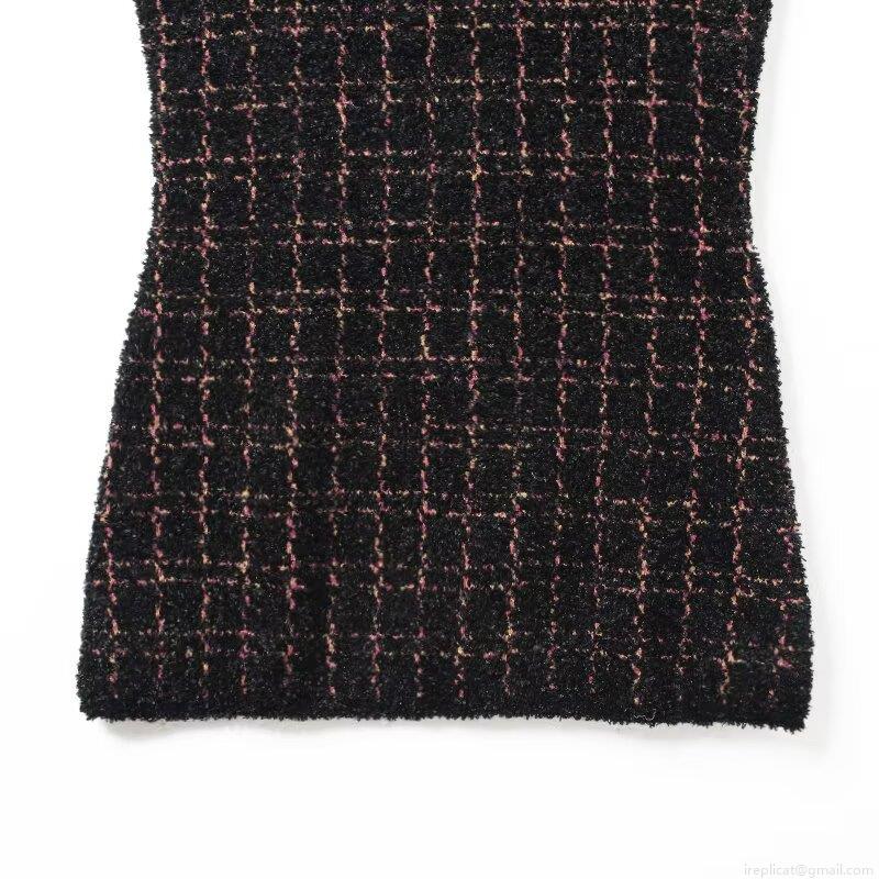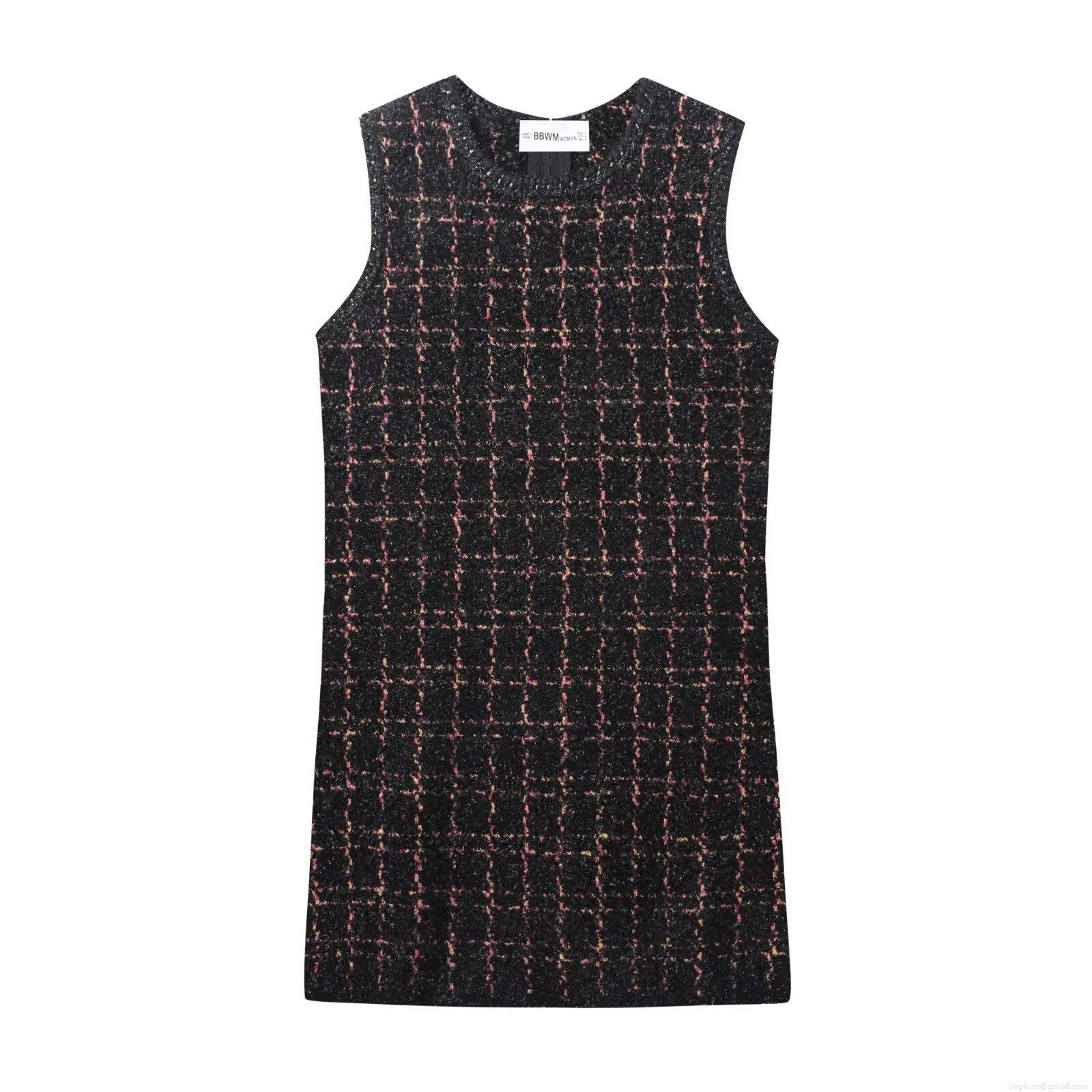• Women's Elegant Plaid Tweed Mini Dress Sleeveless Round Neck Bodycon Vest Dress With Back Zipper Fashion Textured Knit Short Dress For Party Dating Ladies Celebrity Style