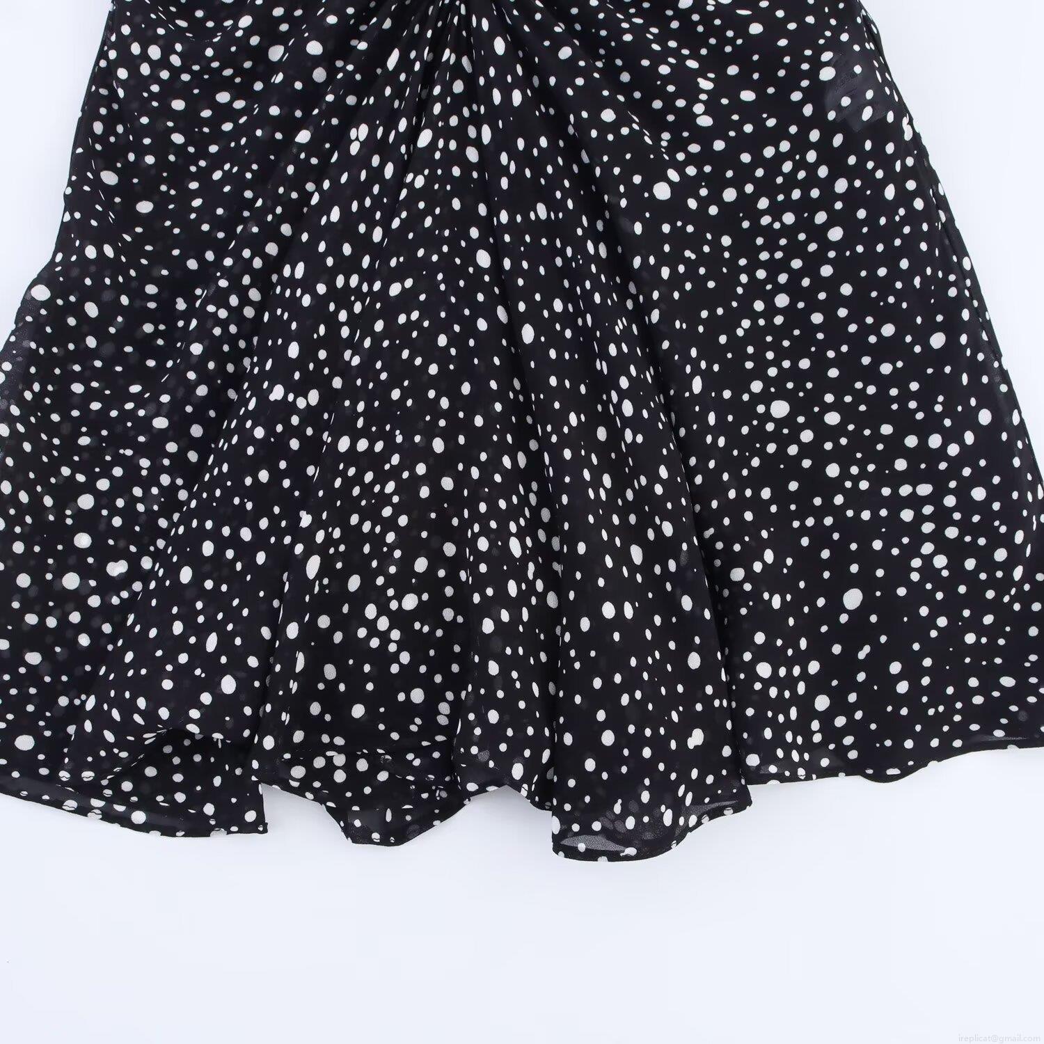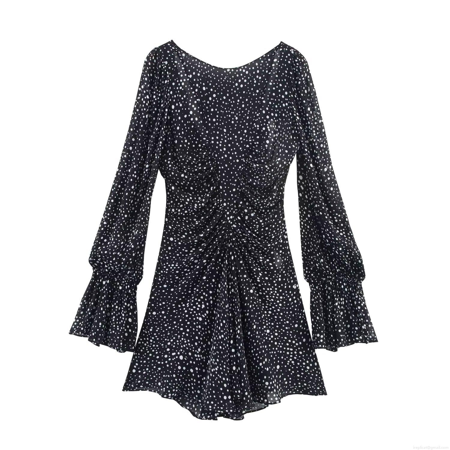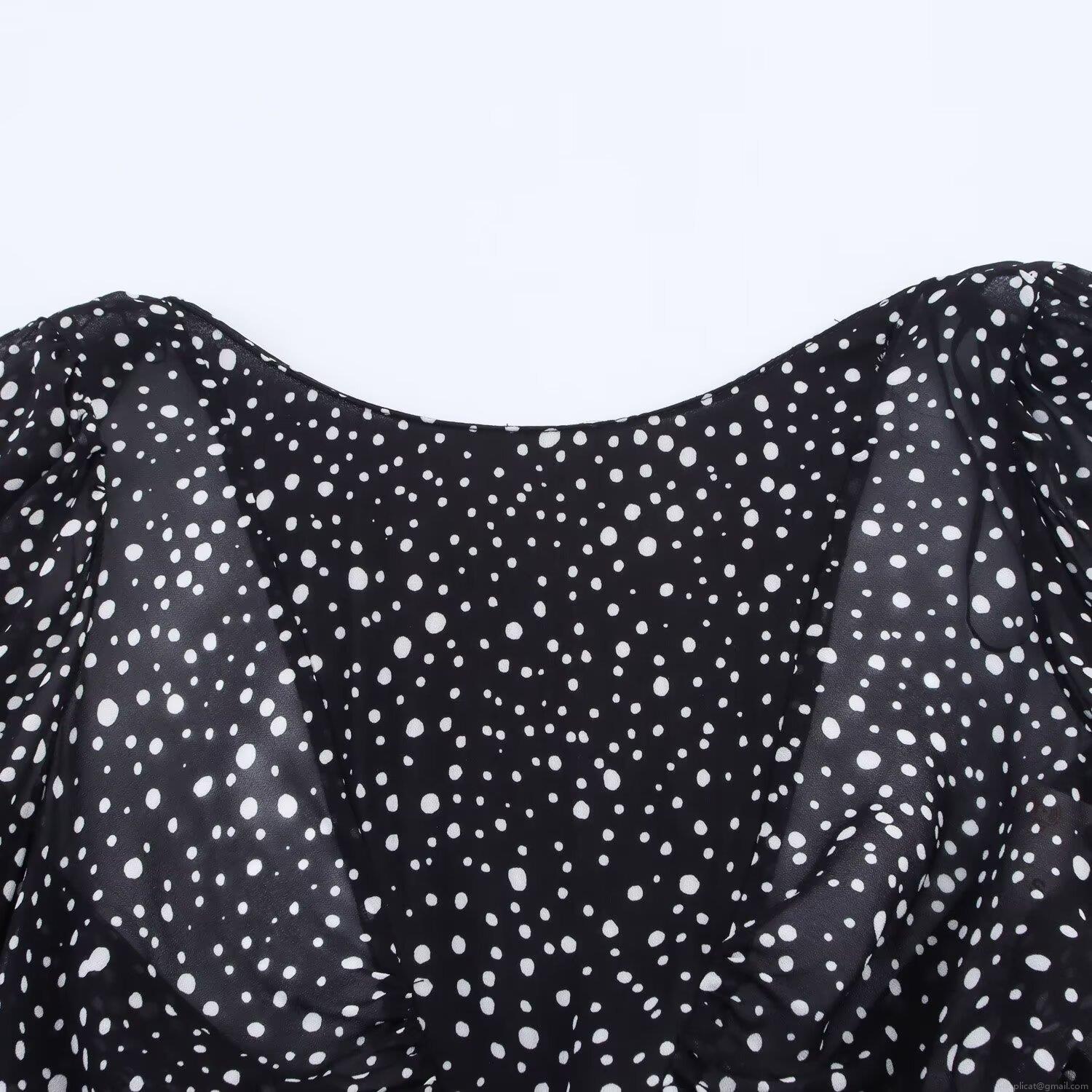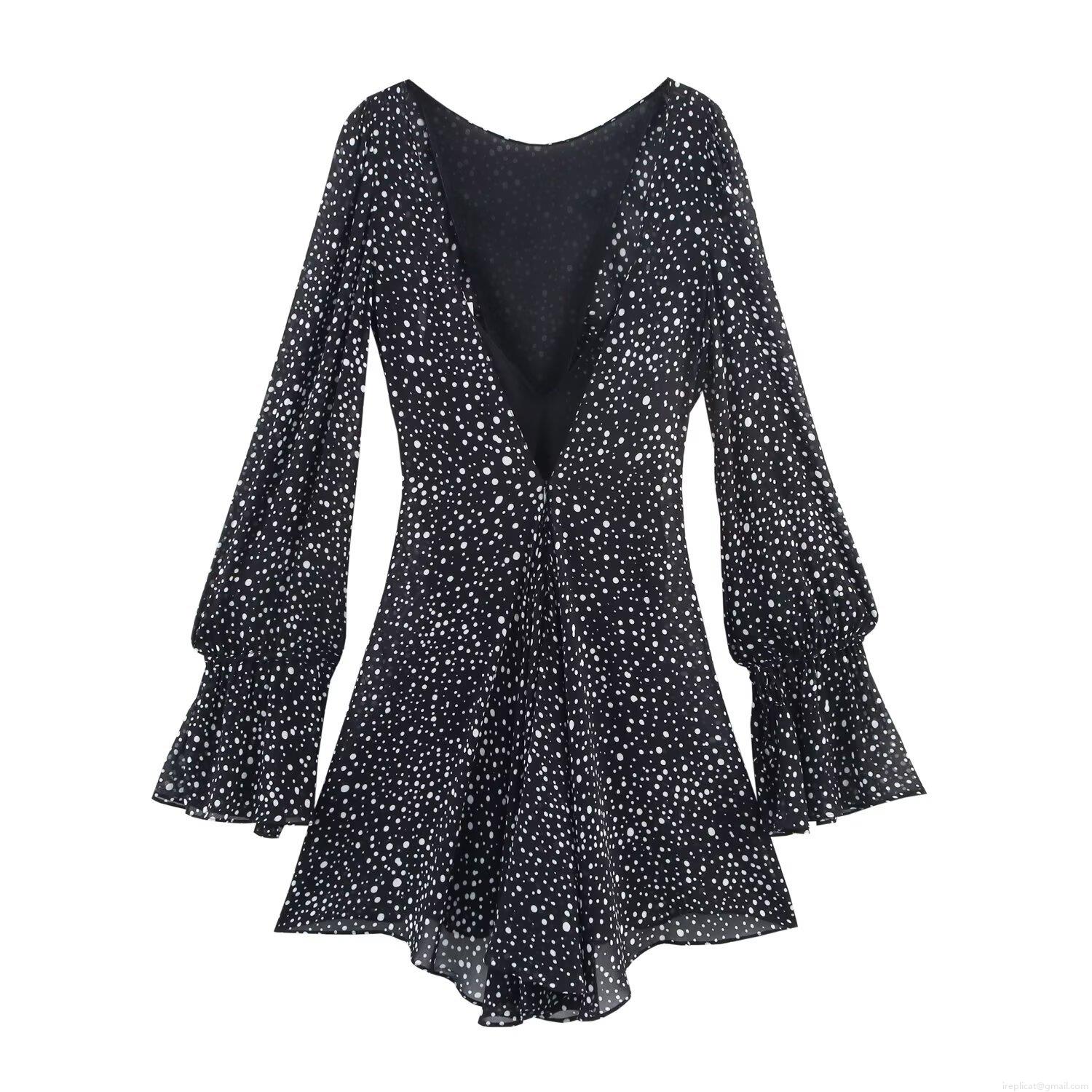 • Women's Elegant Polka Dot Mini Dress Long Flared Sleeve Ruffle V-Neck Chiffon Pullover Short Dress For Party Daily Vacation