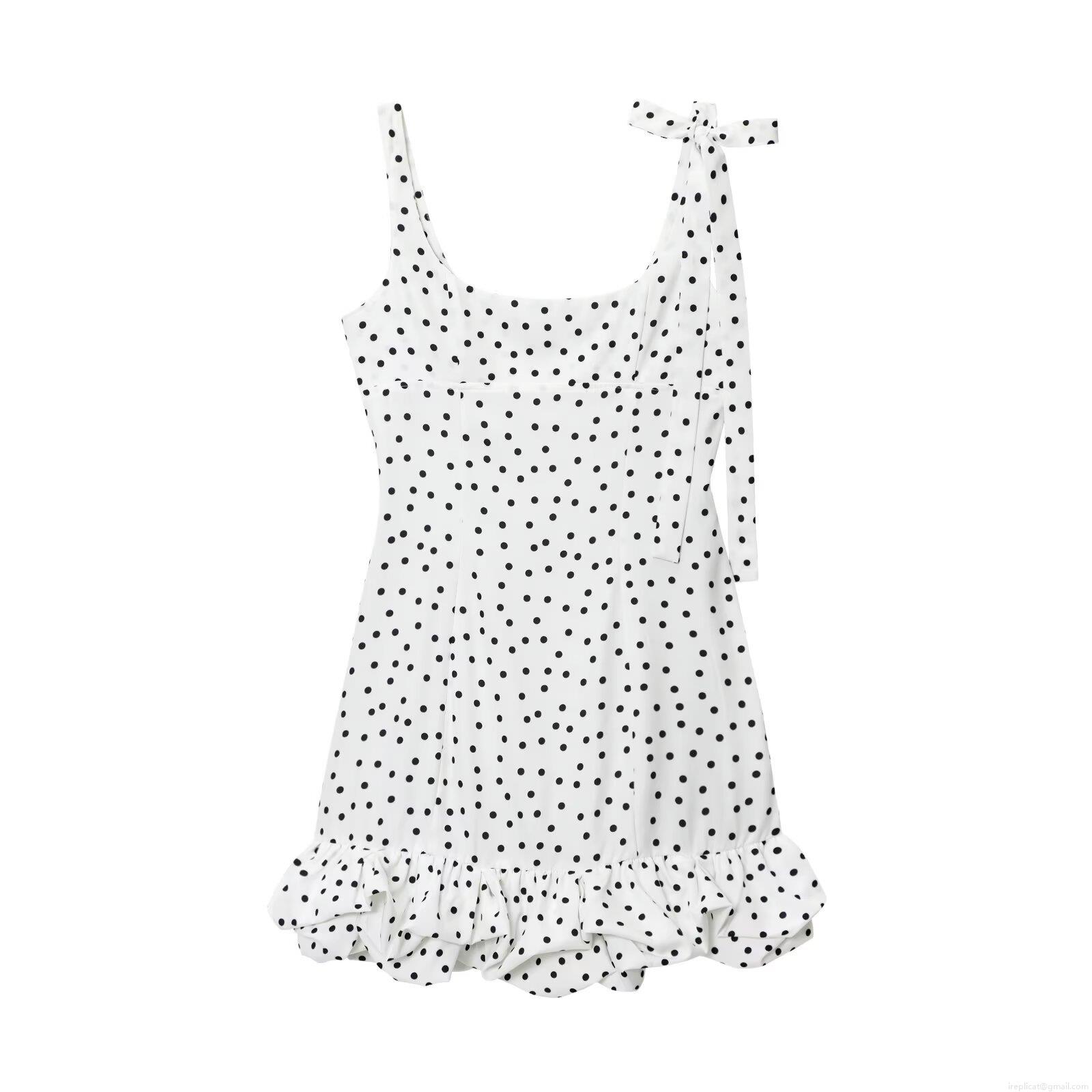• Women's Elegant Polka Dot Mini Dress With Tie Strap Bow Ruffle Hem Summer Slim Fit Polyester Short Dress For Party Daily Wear