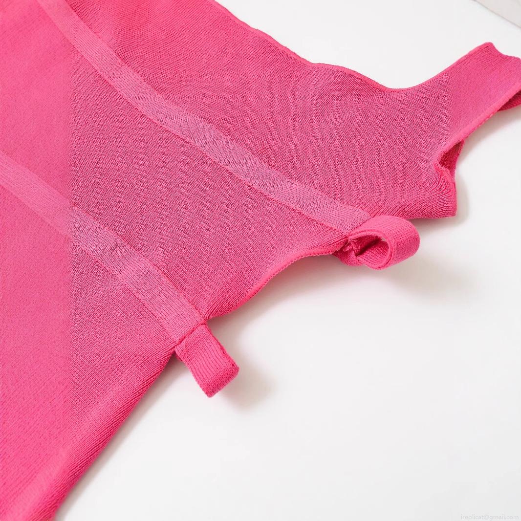 Women's Elegant Rose Red Mercerized Cotton Knit Mini Dress Sleeveless Square Neck Side Cut-out Bow Detail Bodycon Party Dress