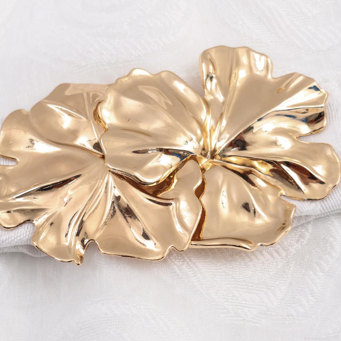 3d Embossing, Ruffled Sleeves, Gold Flower Belt Buckle, Rose Jacquard, Dark Floral Pattern