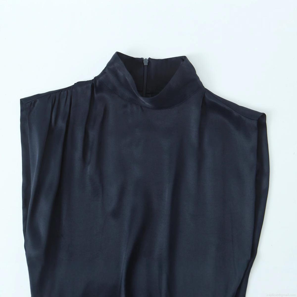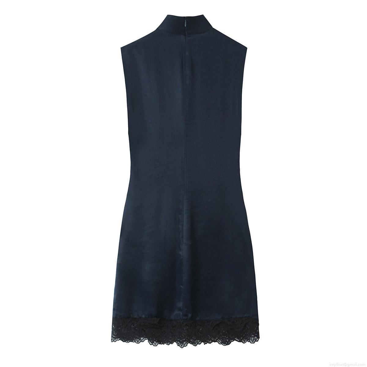 Women's Elegant Ruched Satin Mini Dress Sleeveless Mock Neck Lace Patchwork Hem Sexy Bodycon Cocktail Party Night Club Slim Fit Slinky Evening Dress