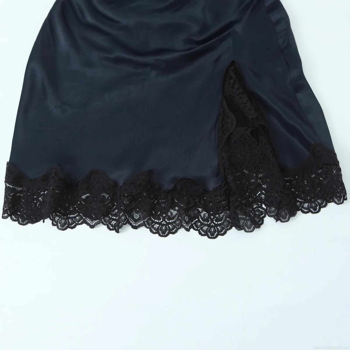 • Women's Elegant Ruched Satin Mini Dress Sleeveless Mock Neck Lace Patchwork Hem Sexy Bodycon Cocktail Party Night Club Slim Fit Slinky Evening Dress