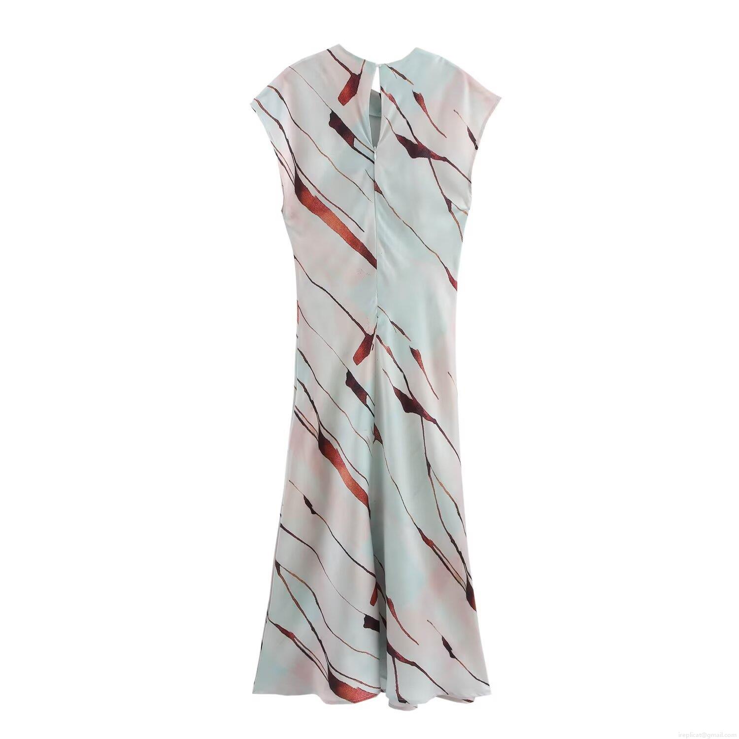 • Women's Elegant Satin Abstract Stripe Print Maxi Dress Sleeveless Round Neck A-Line Long Dress For Summer Vacation Streetwear Party