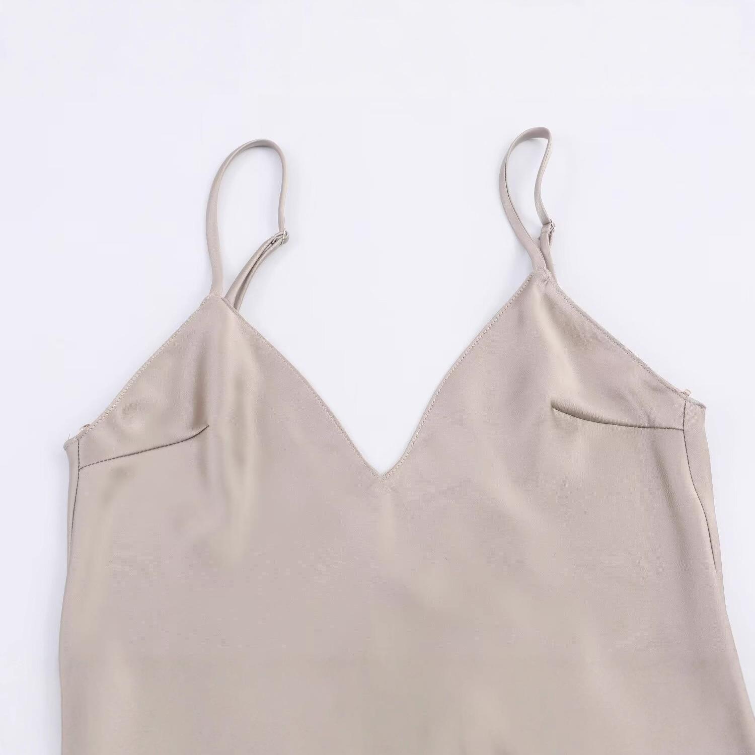 • Women's Elegant Satin Cami Dress with Lace Trim Asymmetric Hem Sexy V-Neck Sleeveless Cocktail Party Vacation Mini Slip Dress