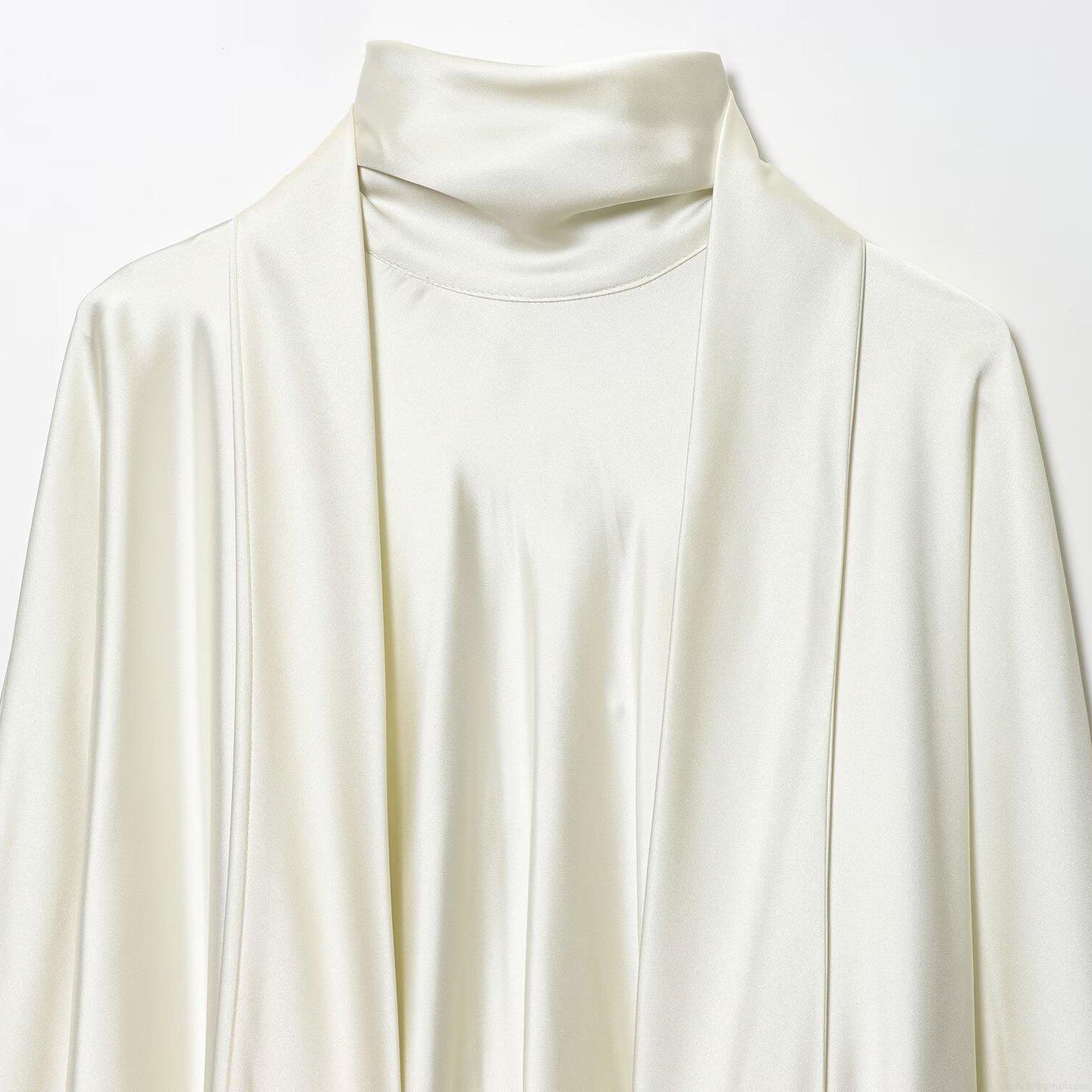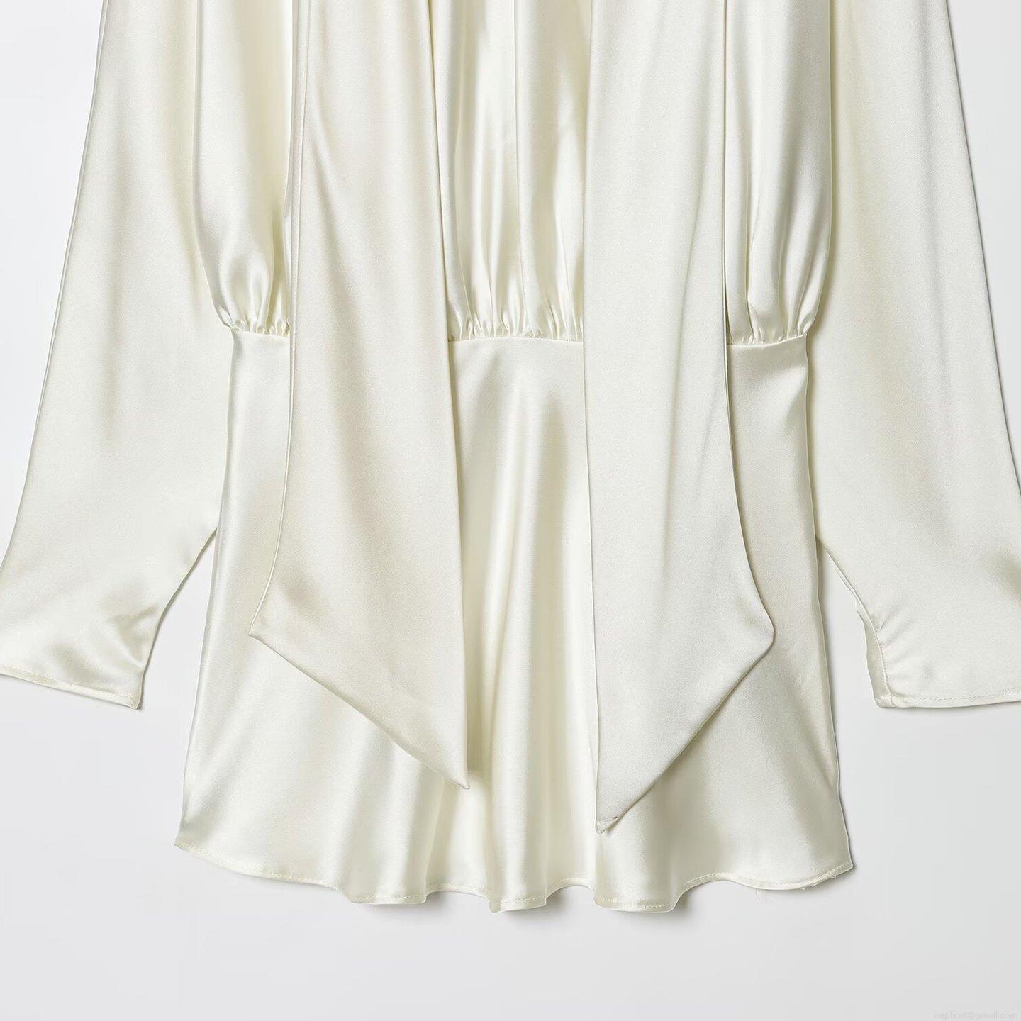 • Women's Elegant Satin Mini Dress With Scarf Collar Long Sleeves Acetate Polyester Silk-like Tie Neck Irregular Hem Casual Party Dress