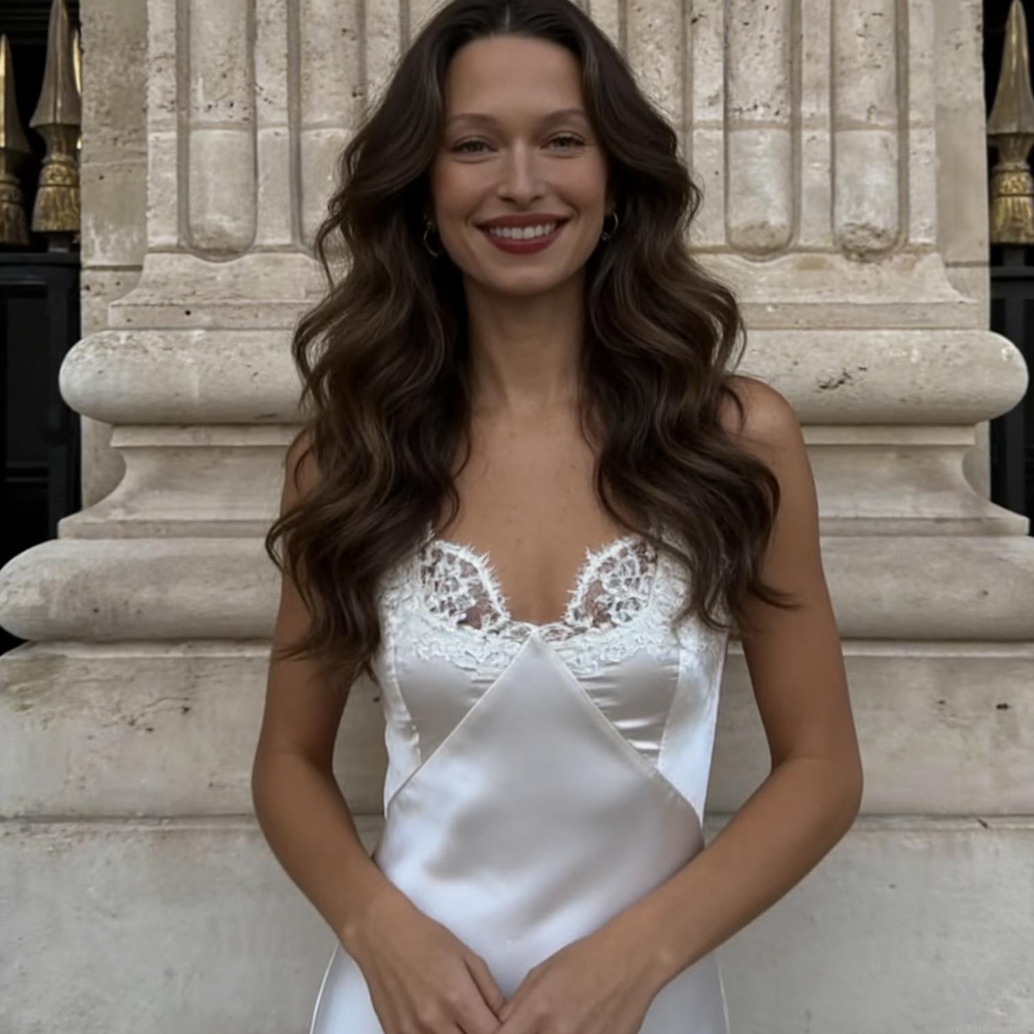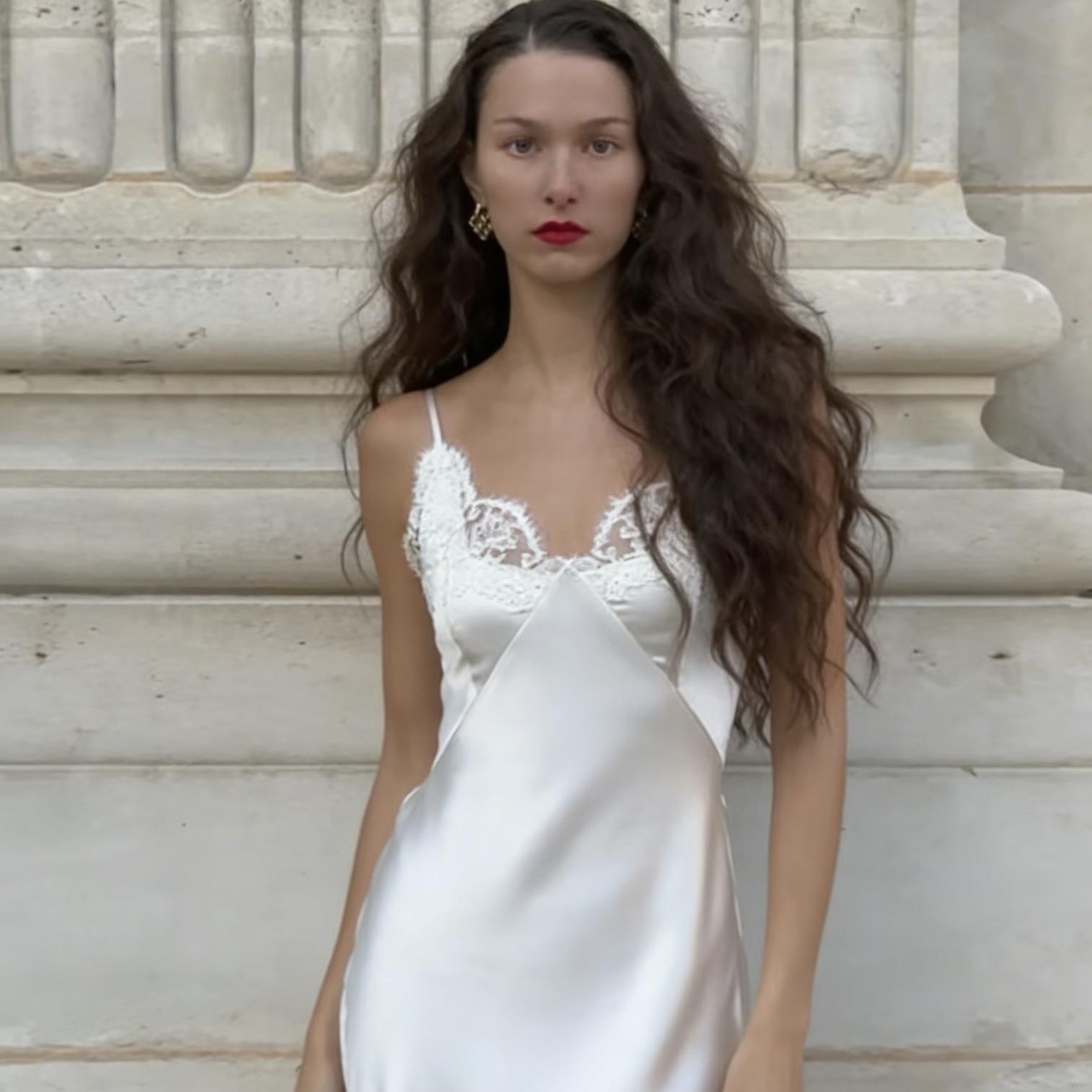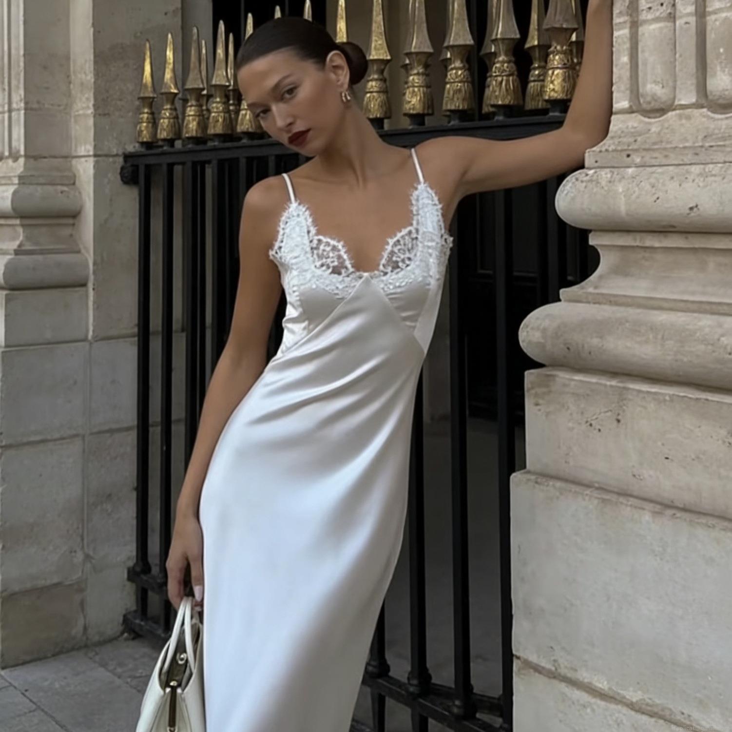 • Women's Elegant Satin Slip Dress With Lace Trim V Neck Backless Sleeveless Mini Dress For Summer Vacation Party Fashionable Evening Wear Dress
