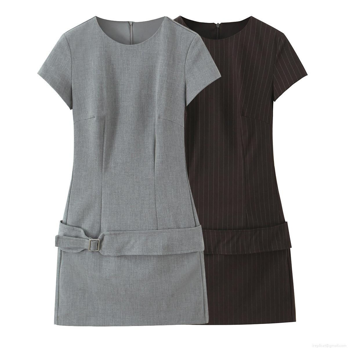 • Women's Elegant Short Sleeve Mini Dress Slim Fit Round Neck Polyester Spandex Belted Dress For Office Work Daily Business Party Wear