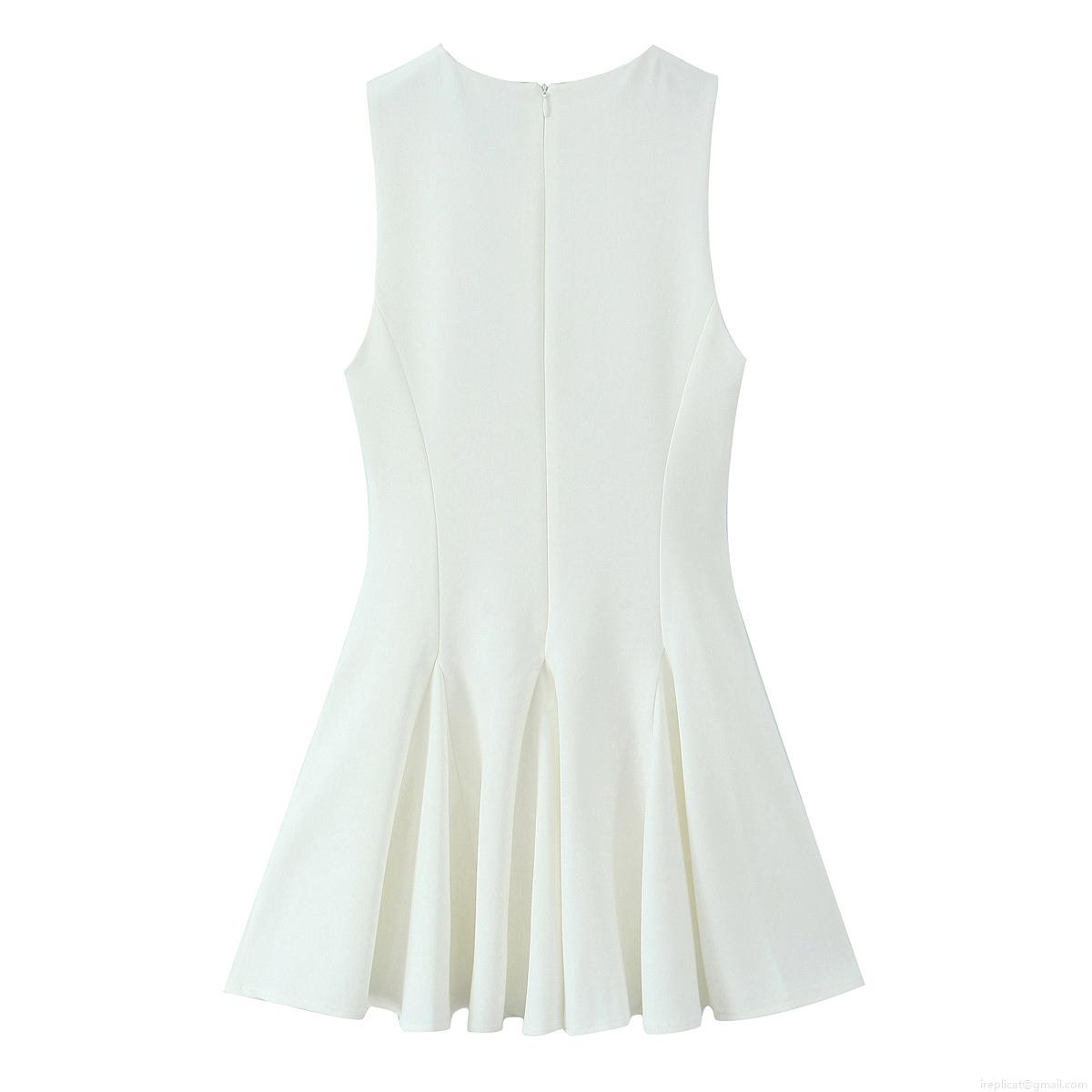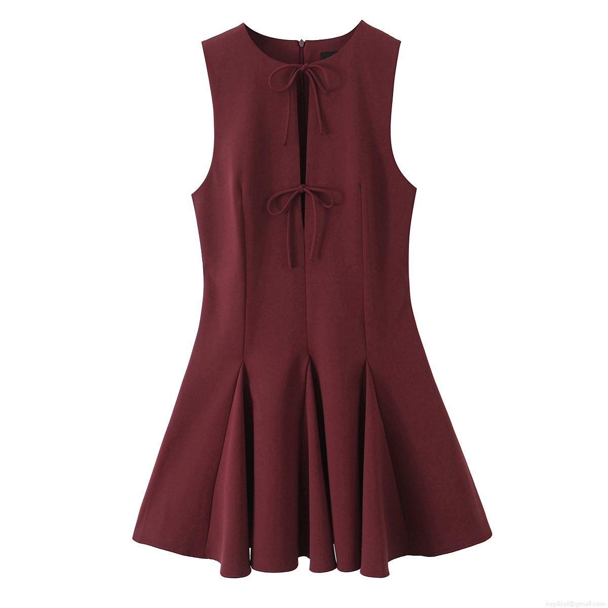 • Women's Elegant Sleeveless A-Line Mini Dress Polyester Solid Color With Bow Cut-out Design Round Neck Pleated Party Cocktail Dress For Women