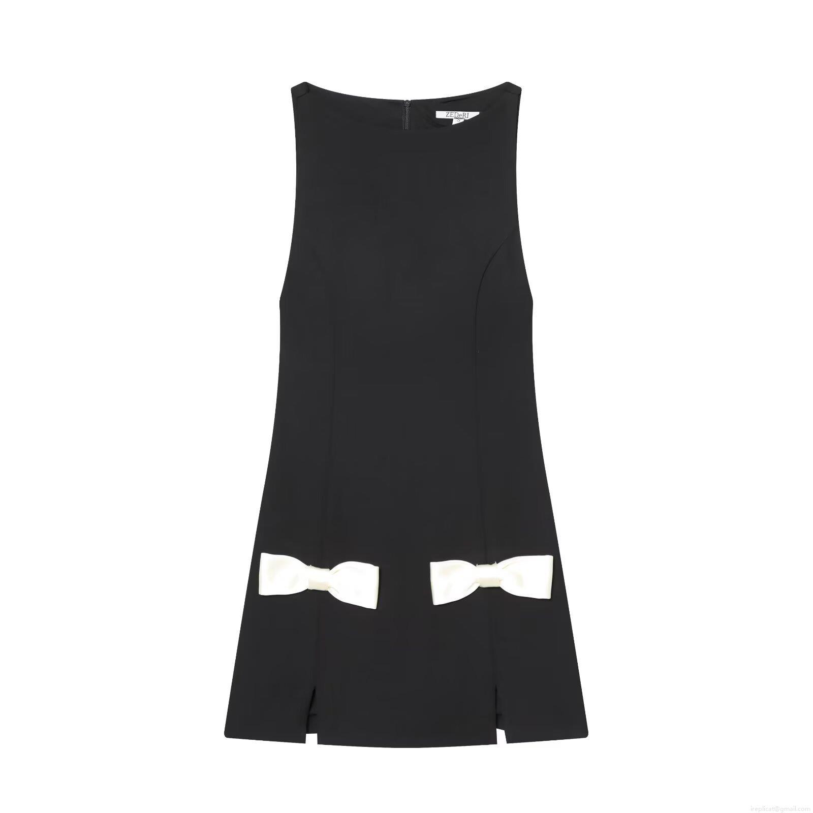 • Women's Elegant Sleeveless Bodycon Mini Dress With Contrast White Bow Decoration Back Zipper Elastic Polyester Slim Fit Short Dress For Evening Party Cocktail Clubwear Fashion Sexy Outfits