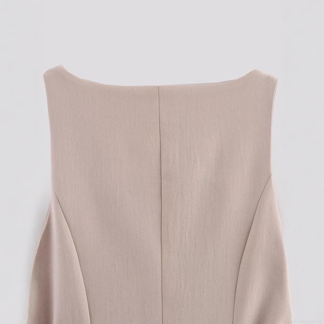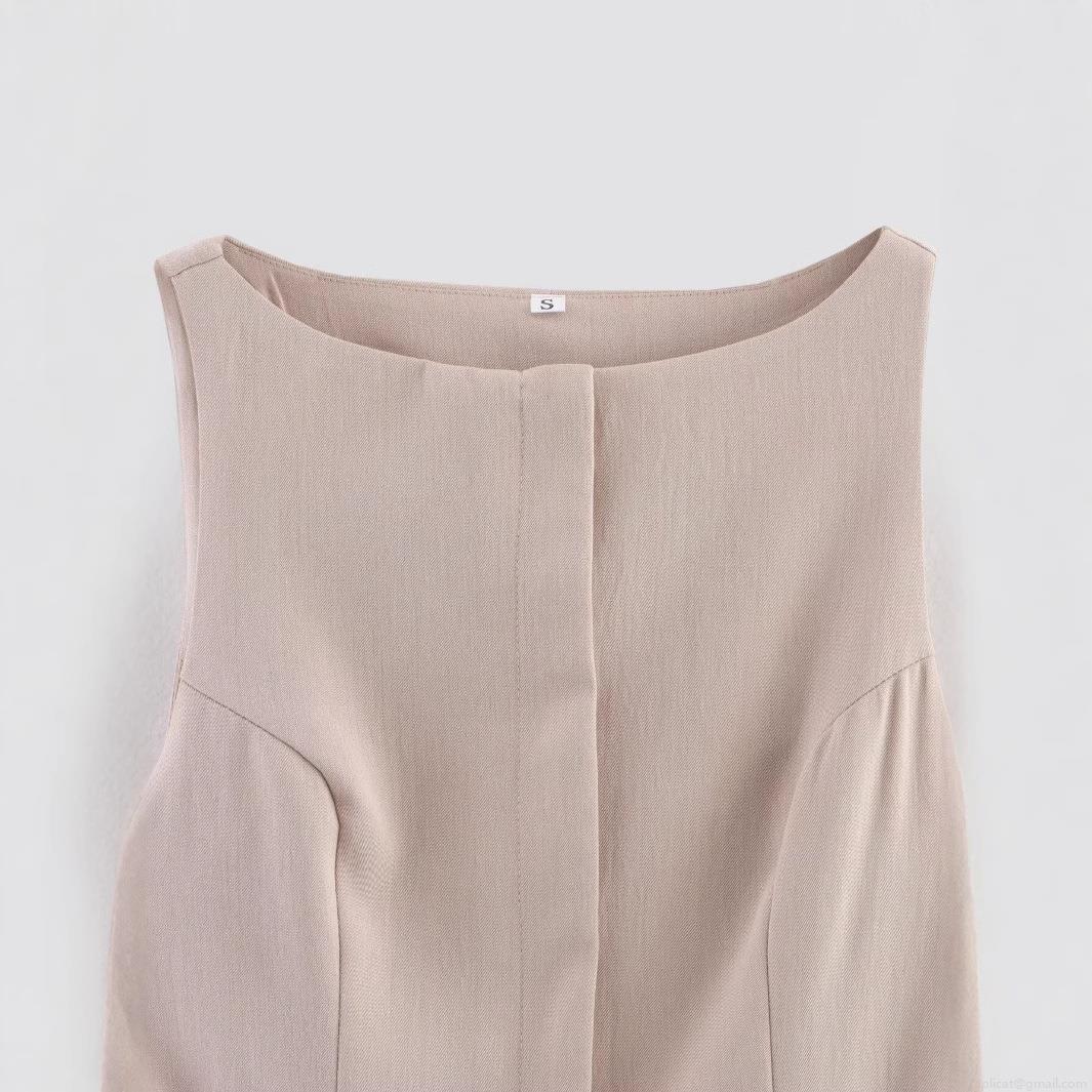 • Women's Elegant Sleeveless Faux Two-Piece Mini Dress With Belt Round Neck Solid Color Polyester Summer Fashion Party Wear Streetwear A-Line Skirt