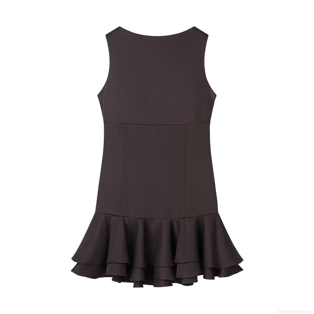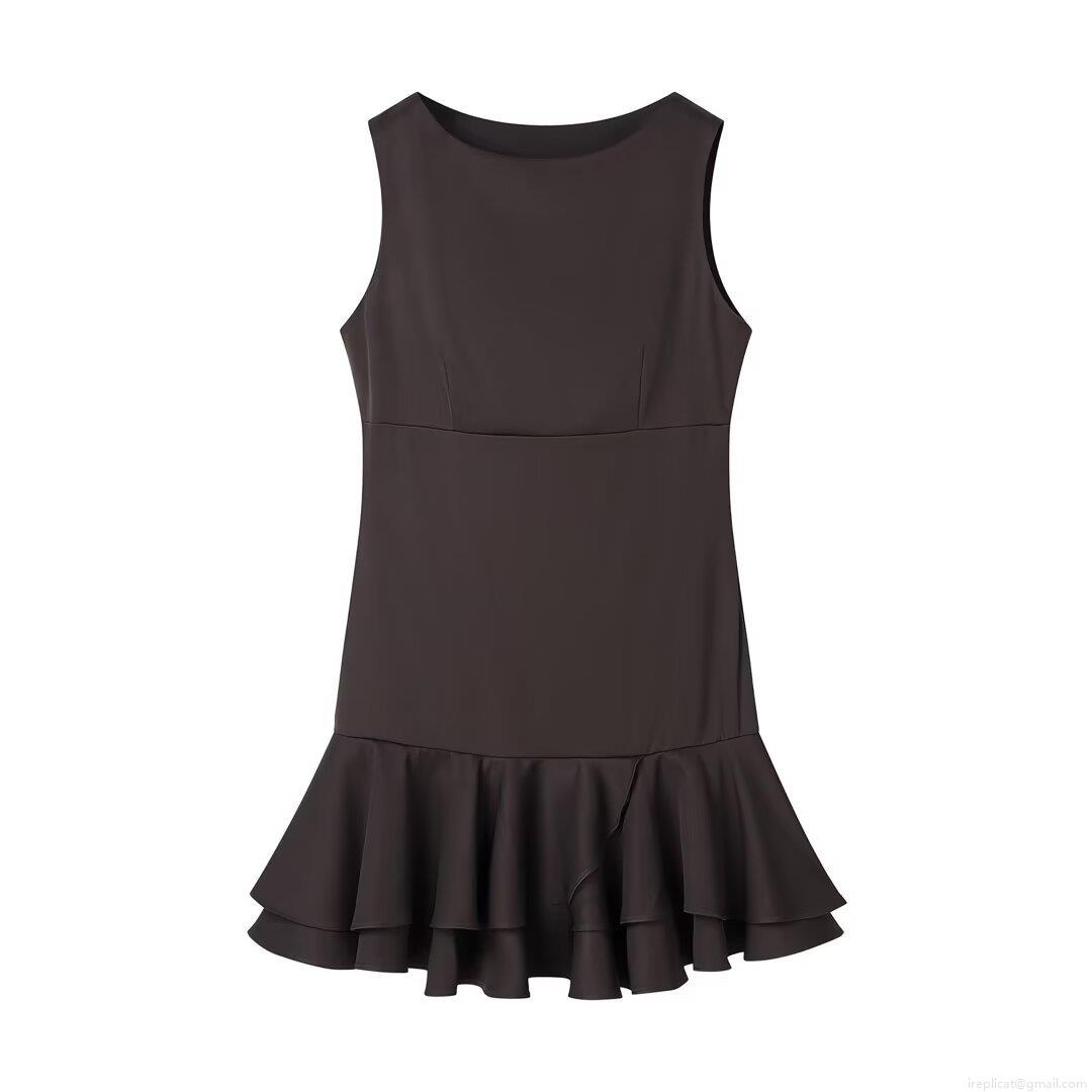 • Women's Elegant Sleeveless Mini Dress Round Neck Layered Ruffle Hem Woven Polyester Blend Fabric Casual Vacation Party Dress