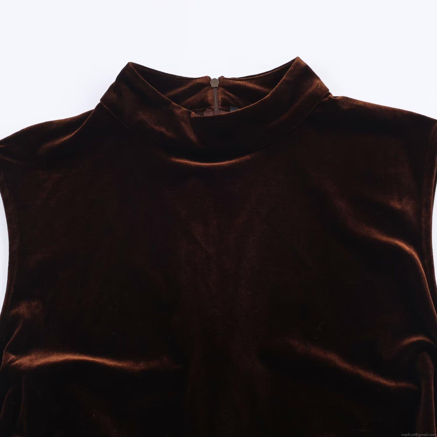 • Women's Elegant Sleeveless Mock Neck Velvet Mini Dress With Lace Hem Sexy Ruched Bodycon Party Cocktail Dress Deep Brown Coffee