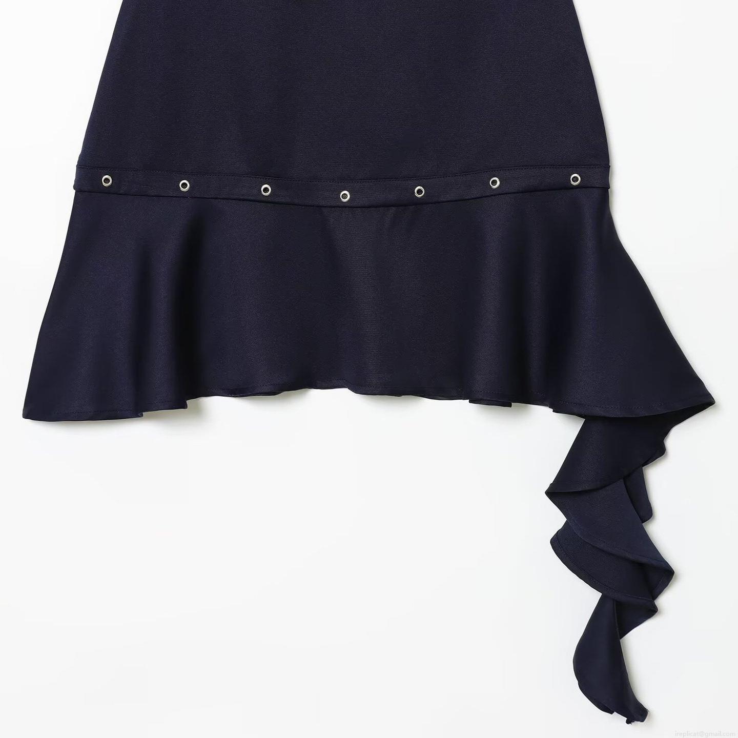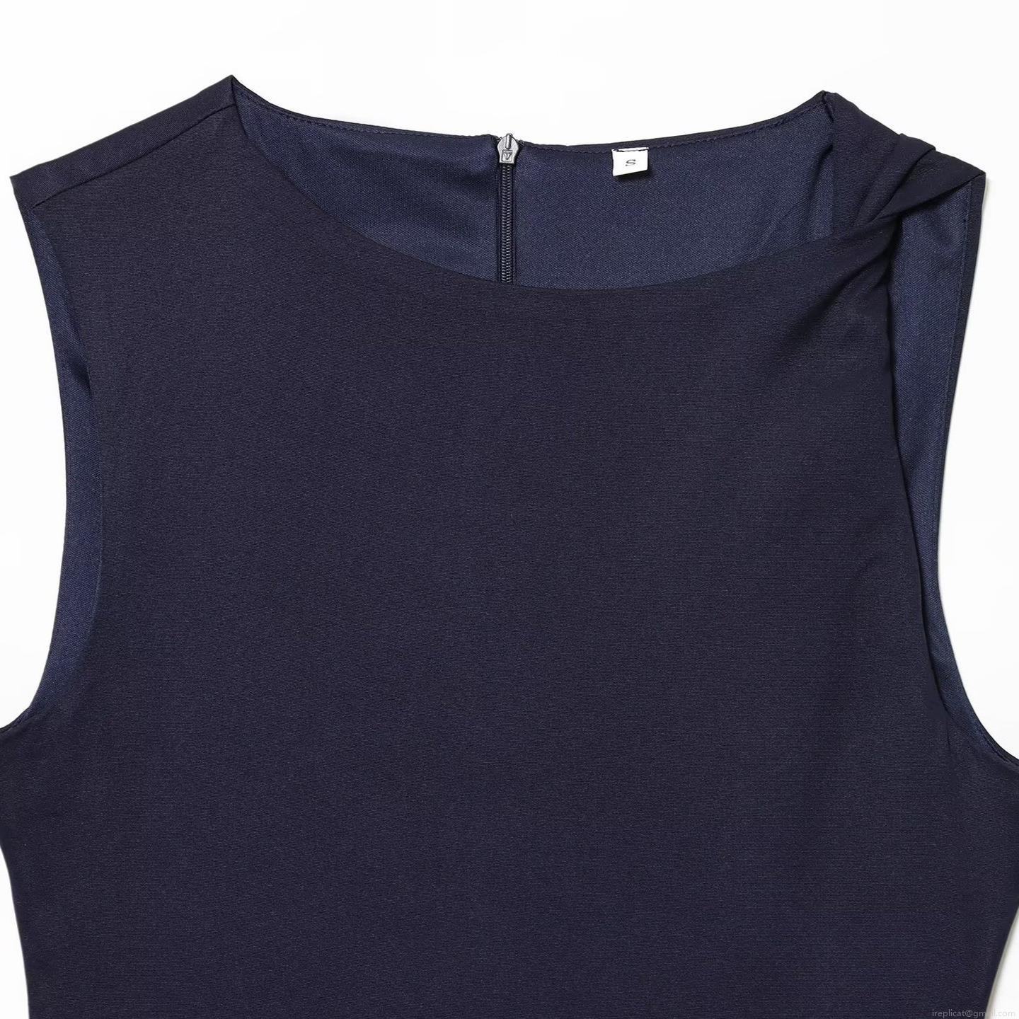• Women's Elegant Sleeveless Round Neck Mini Dress Plain Color High Waist Slim Fit A-Line Skirt With Metal Eyelets Asymmetrical Ruffle Hem For Party Date Night Out Navy Blue Fashion Dress