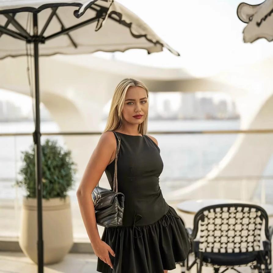 • Women's Elegant Sleeveless Round Neck Mini Dress Socialite Style Bow Pleated Hem A-Line Solid Color Back Zipper Short Party Dress