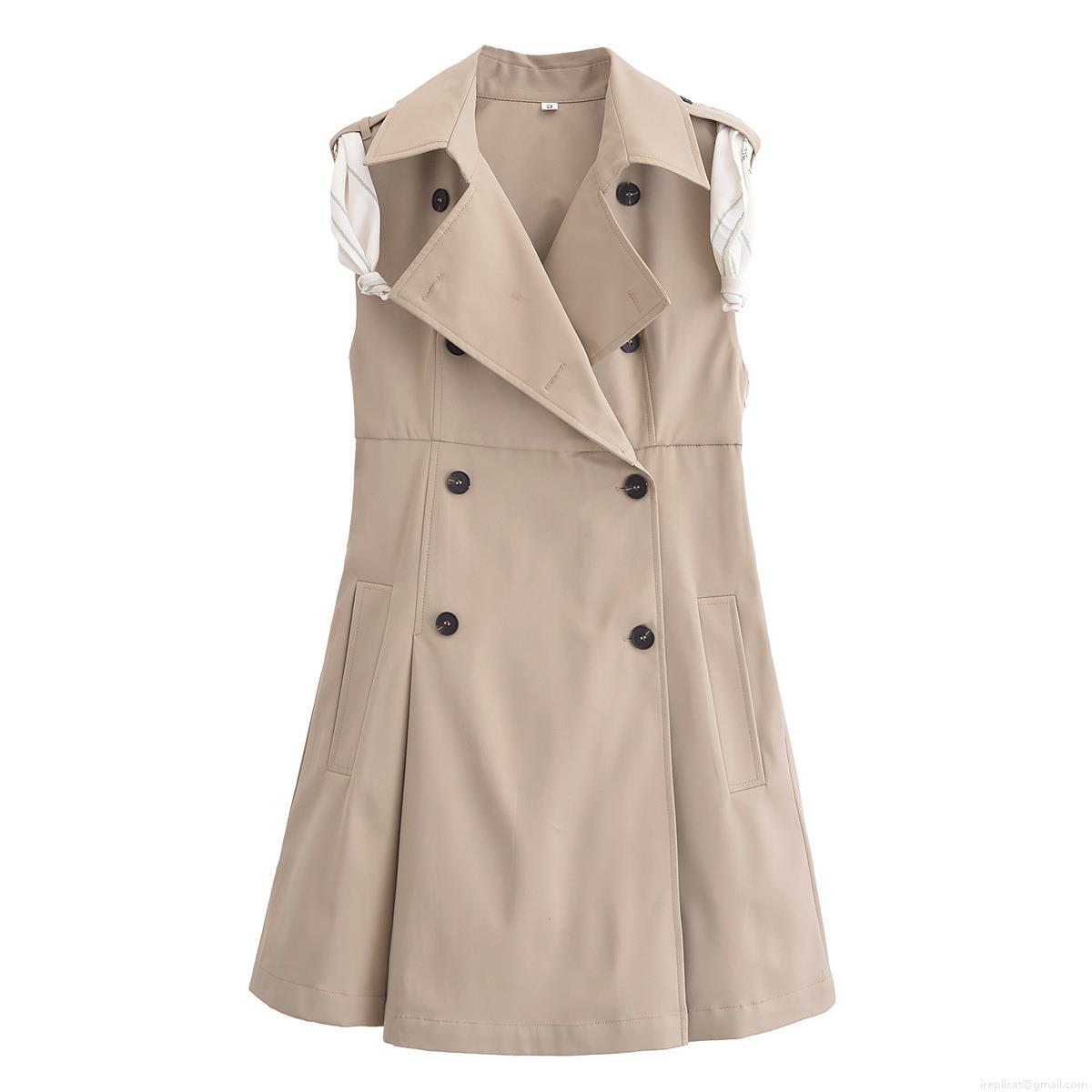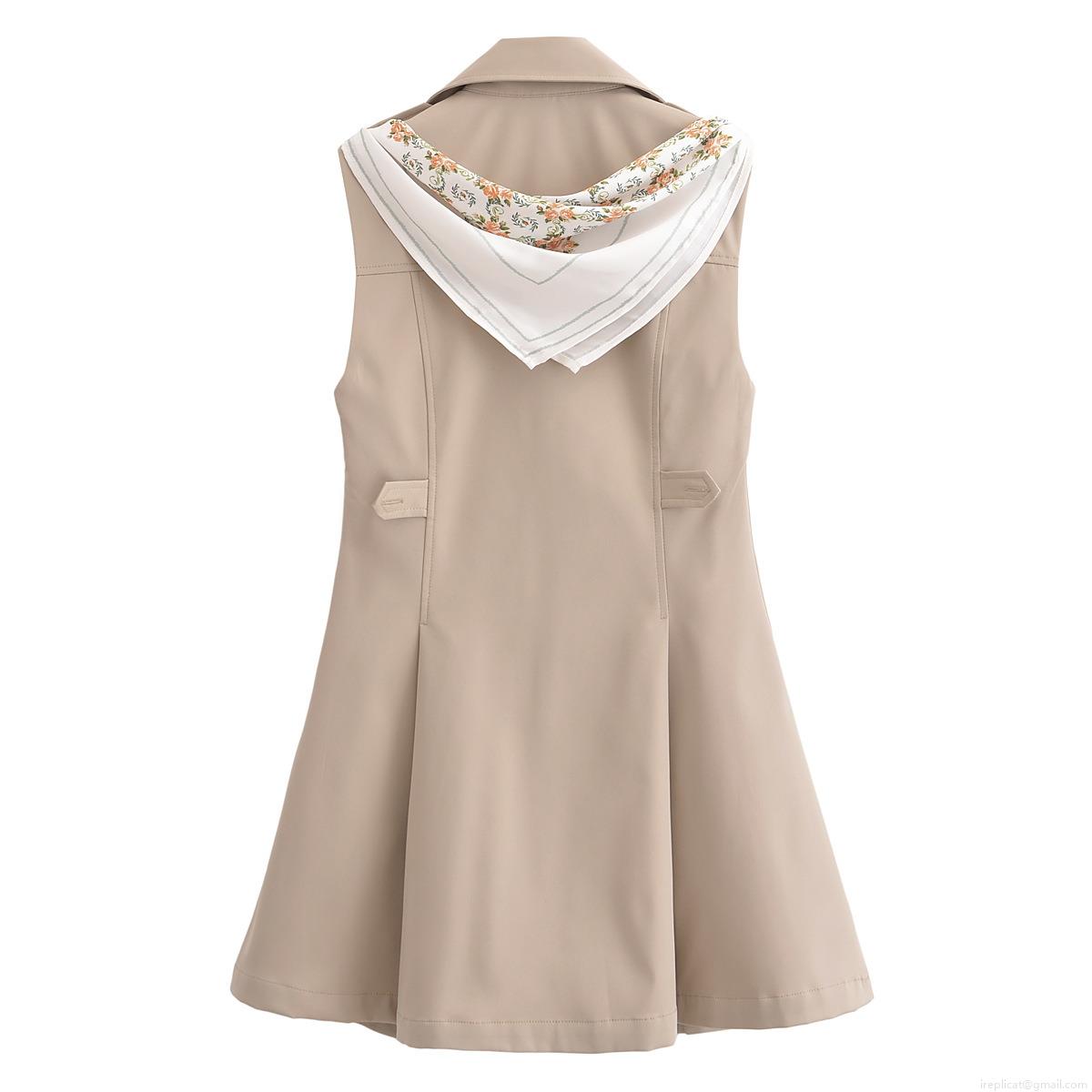 • Women's Elegant Sleeveless Trench Mini Dress Double Breasted Polyester Vest Dress With Scarf For Casual Party Lady Style