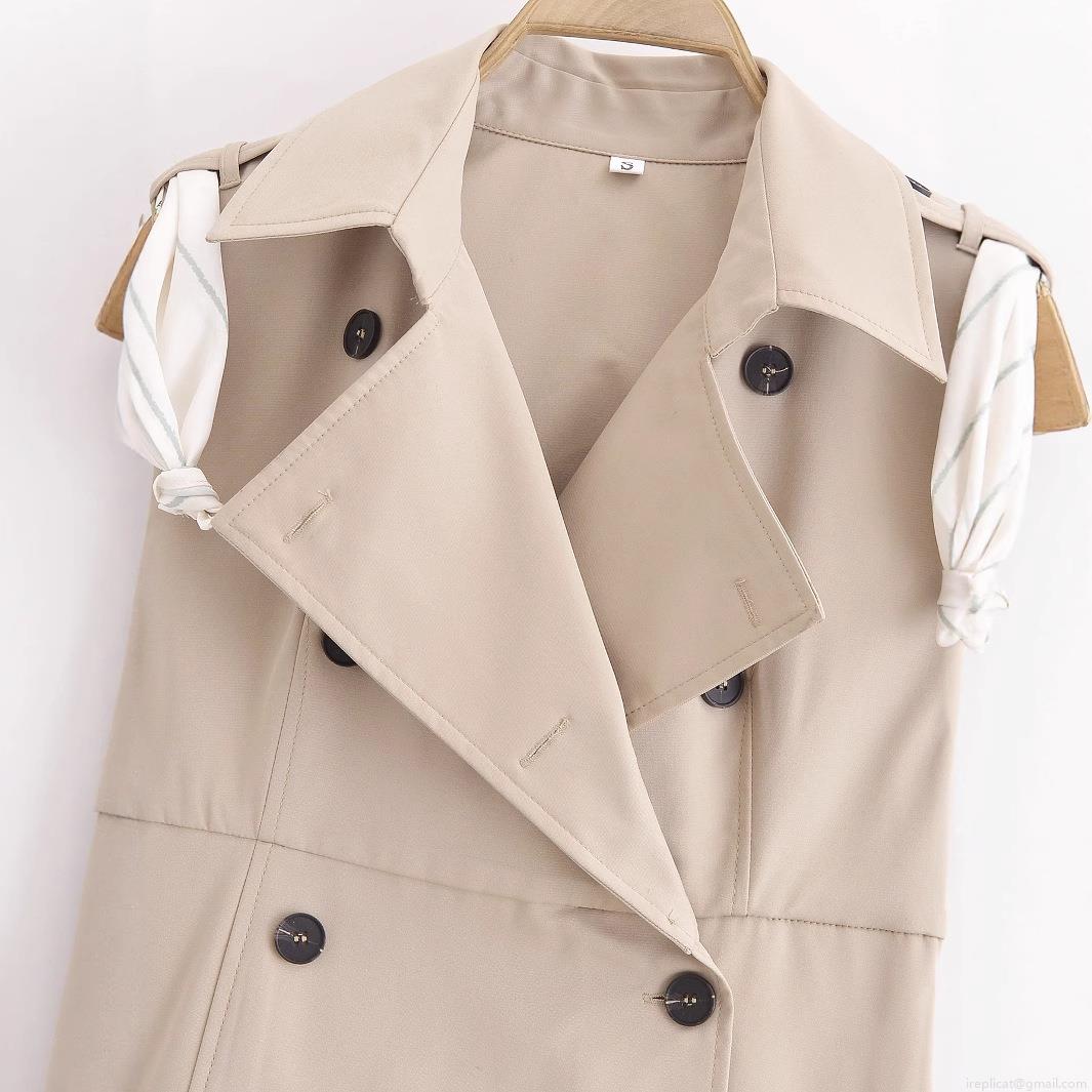 Solid Color, Sleeveless, Lapel, Double-breasted, Matching A Silk Scarf