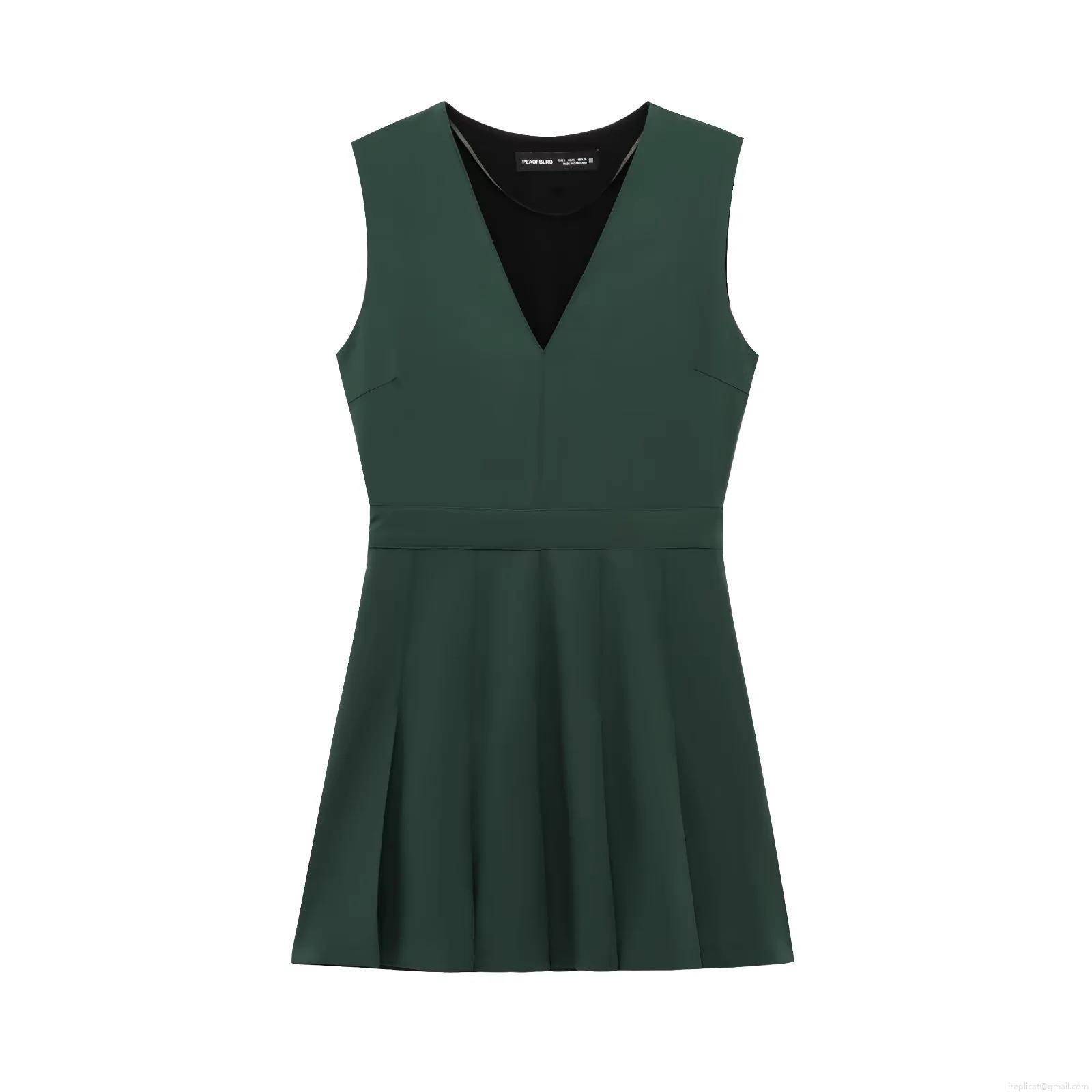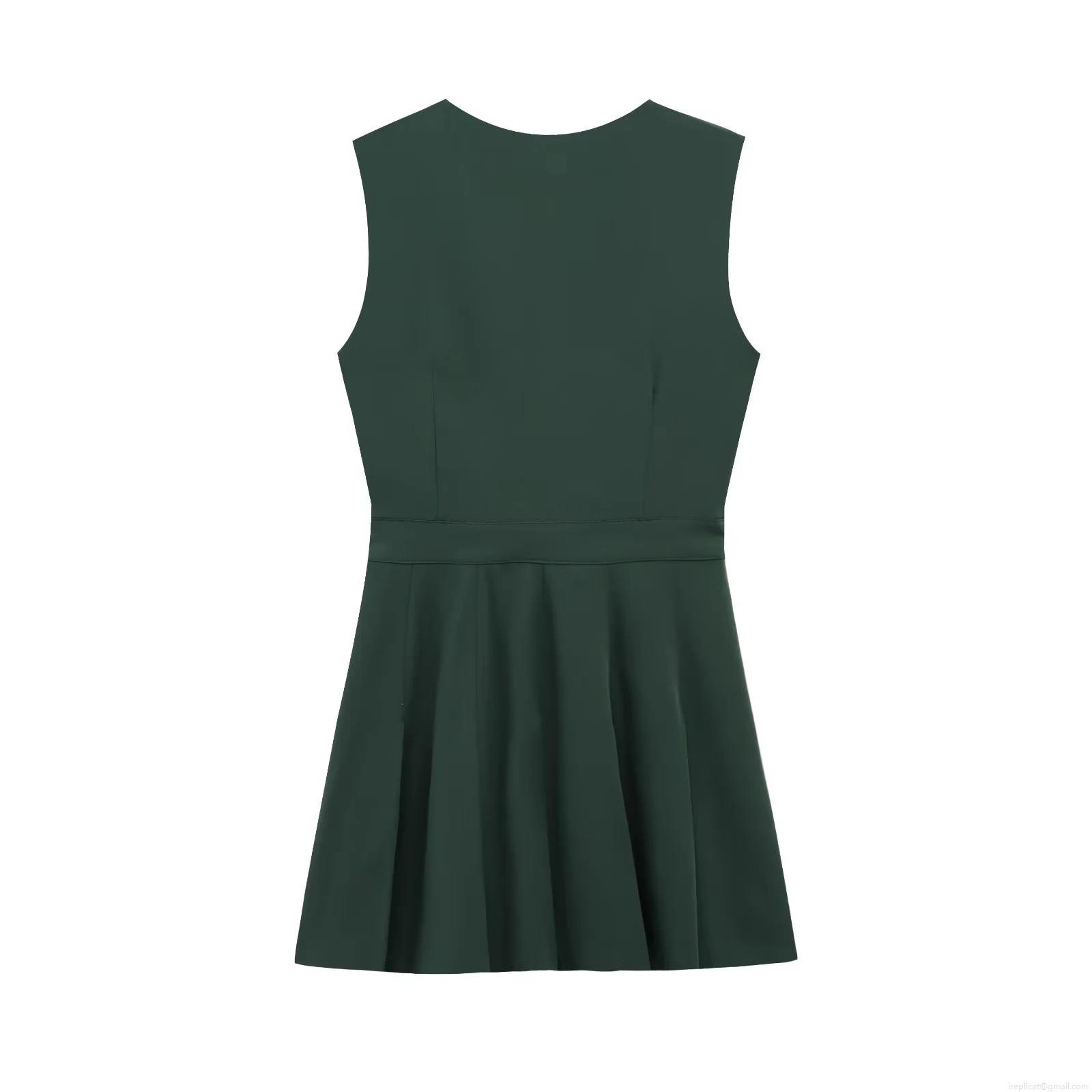 • Women's Elegant Sleeveless V-Neck Pleated Mini Dress Solid Color Waist Cinching Polyester Short Dress For Party Evening Clubwear