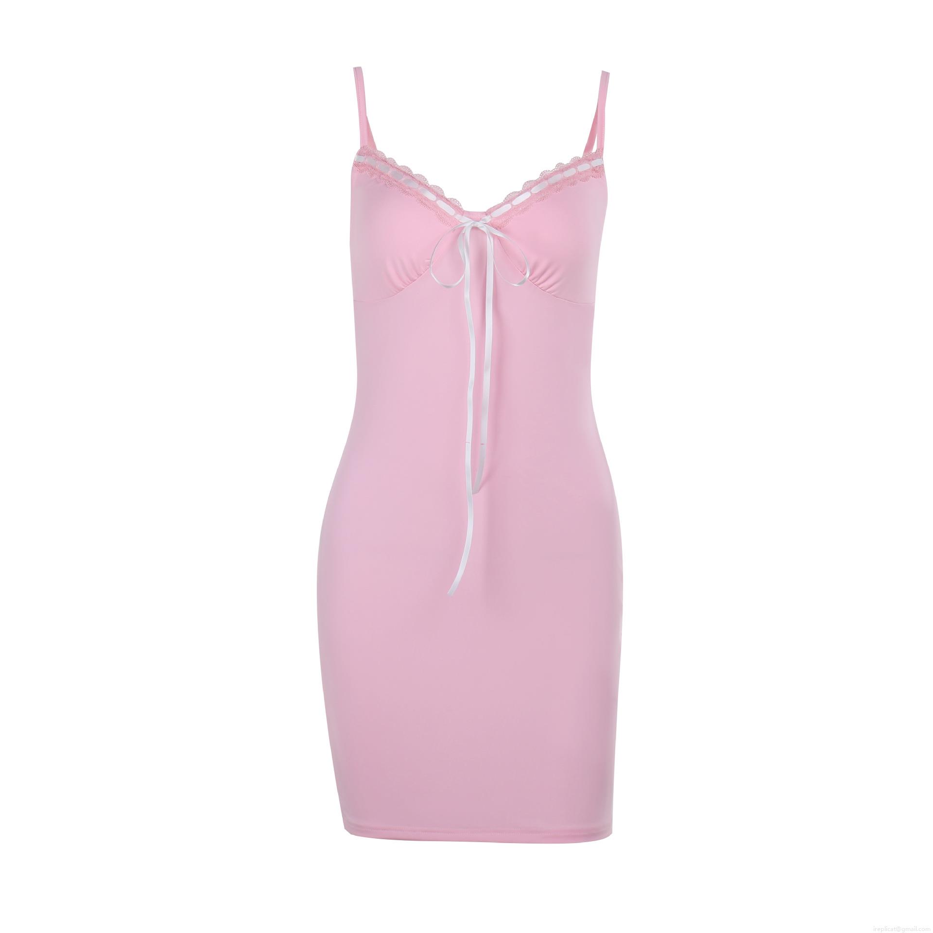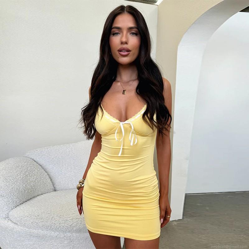 • Women's Elegant Slip Mini Dress Polyester Spandex Lace Trim Bowtie V-Neck Ruched Bodycon Dress For Party Clubwear Sexy Sweet Style