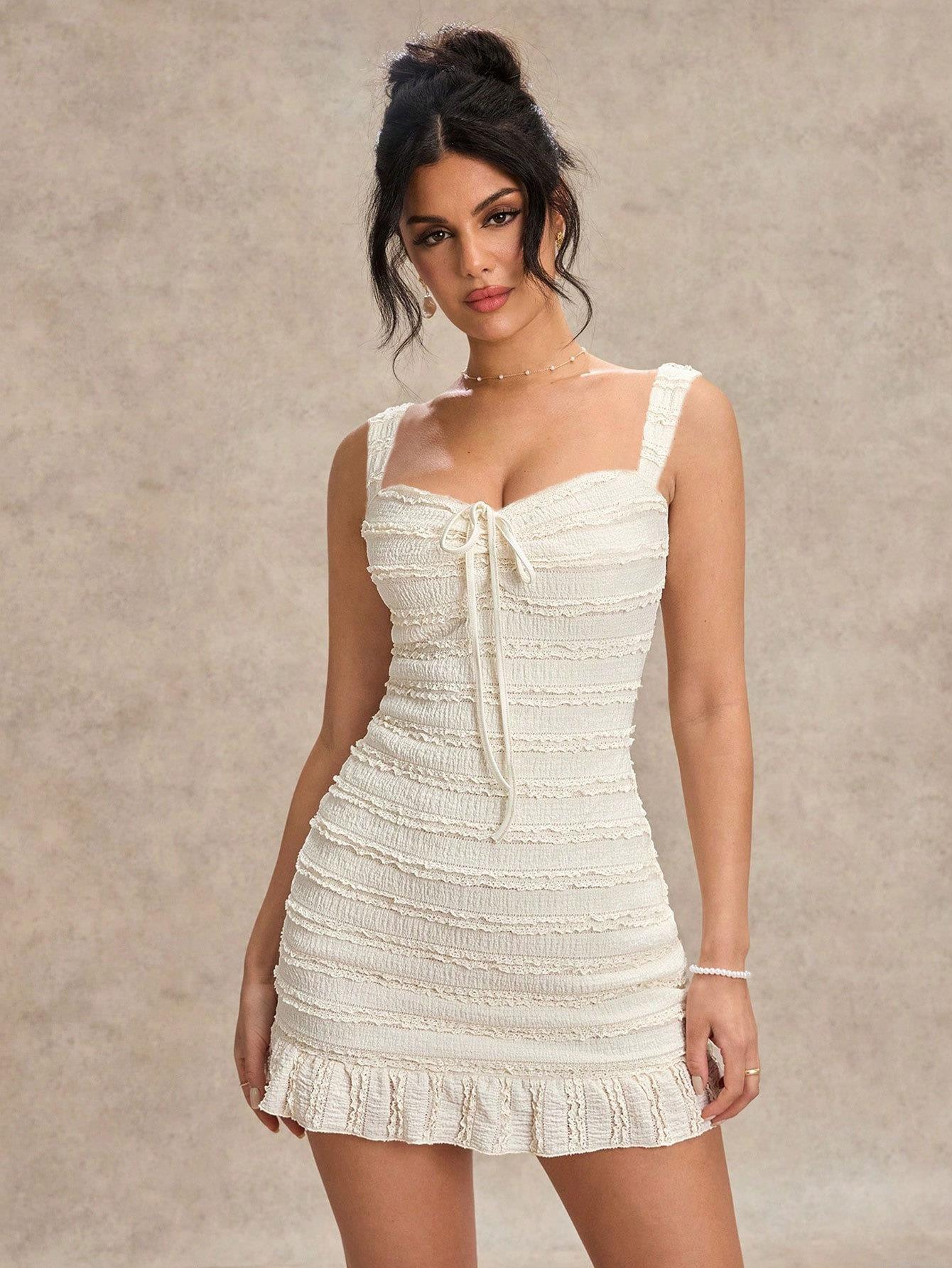 • Women's Elegant Smocked Bodycon Mini Dress With Ruffles Sexy Solid Color Square Neck Sleeveless Lace-up Slim Fit Dress For Party Dating Summer