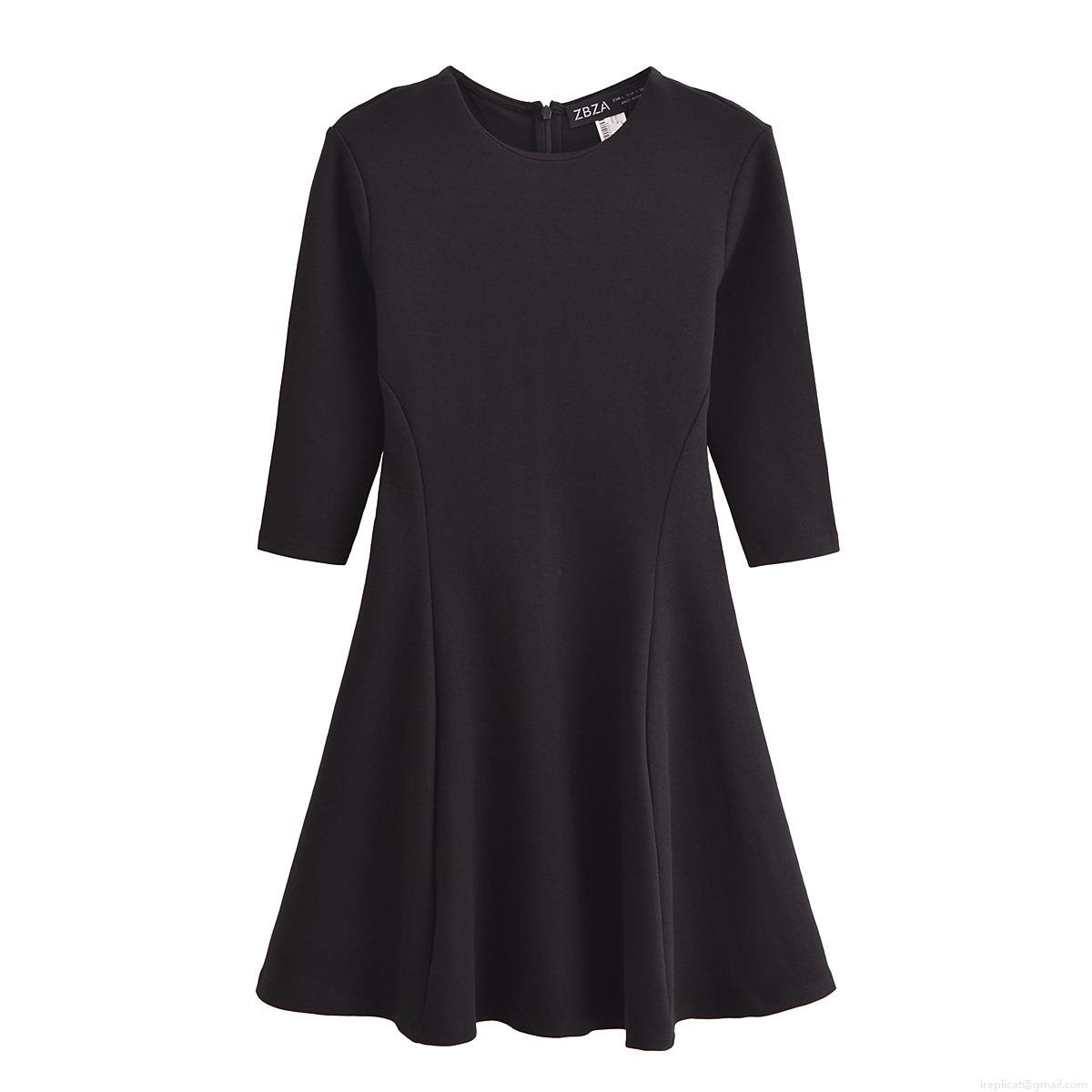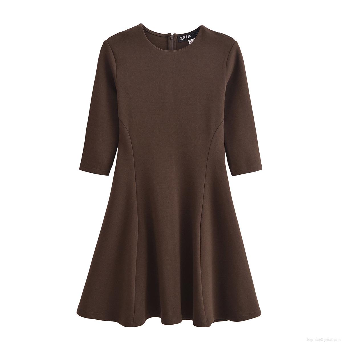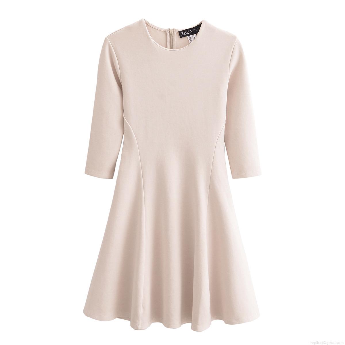 • Women's Elegant Solid Color Round Neck Long Sleeve A-Line Mini Dress Stretchy Slim Fit Polyester Short Skater Dress For Party Streetwear