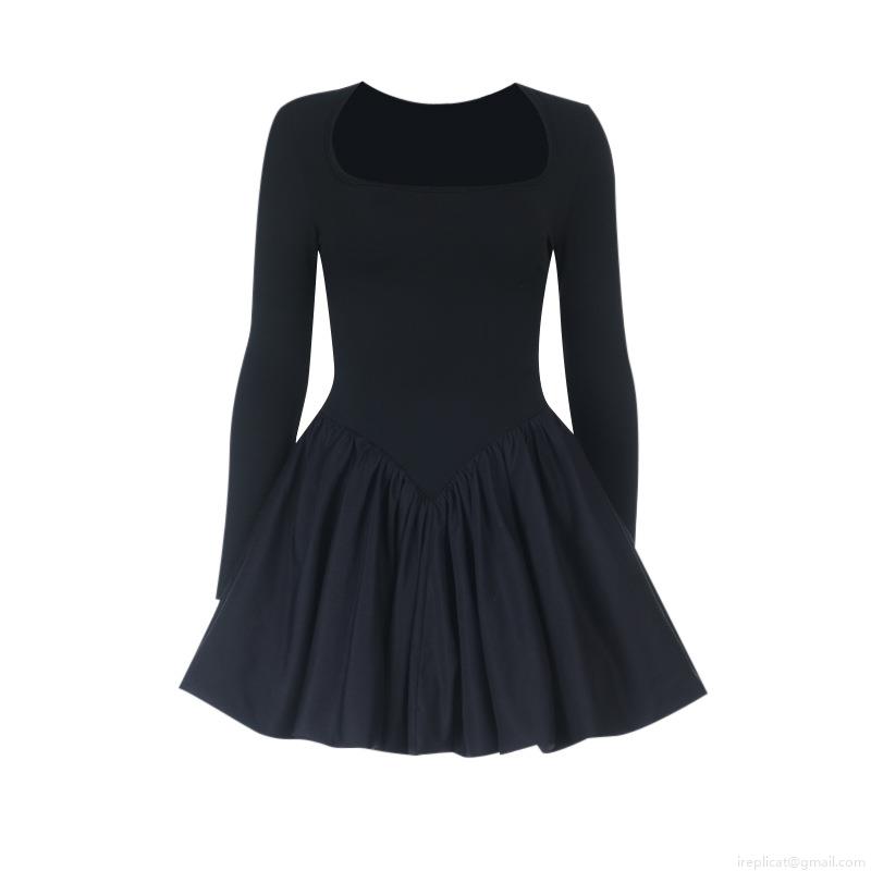 • Women's Elegant Square Neck Long Sleeve Mini Dress Spliced Cotton Polyester Bubble Hem Black Sexy Party Evening Dress For Ladies