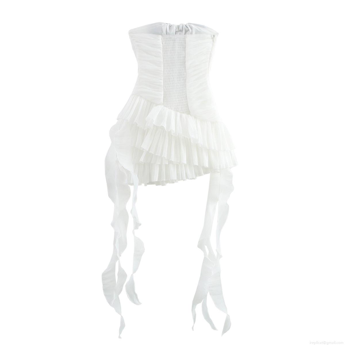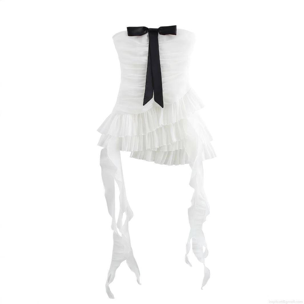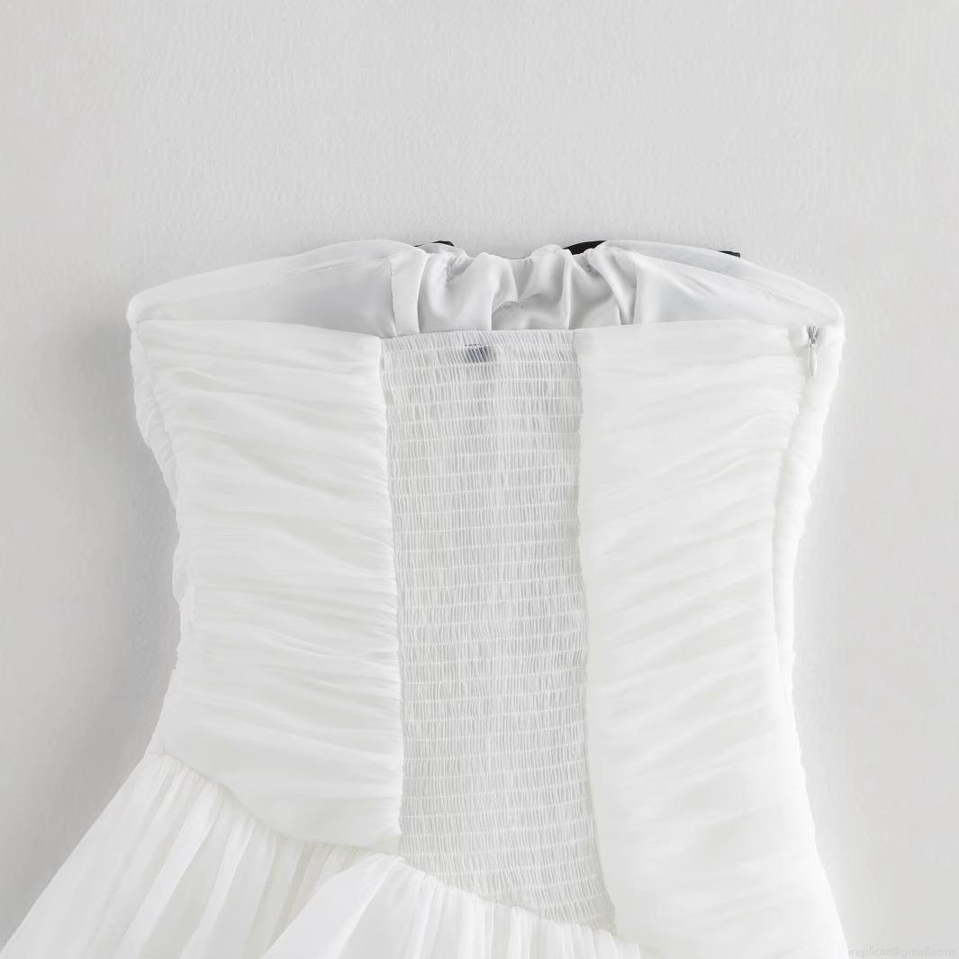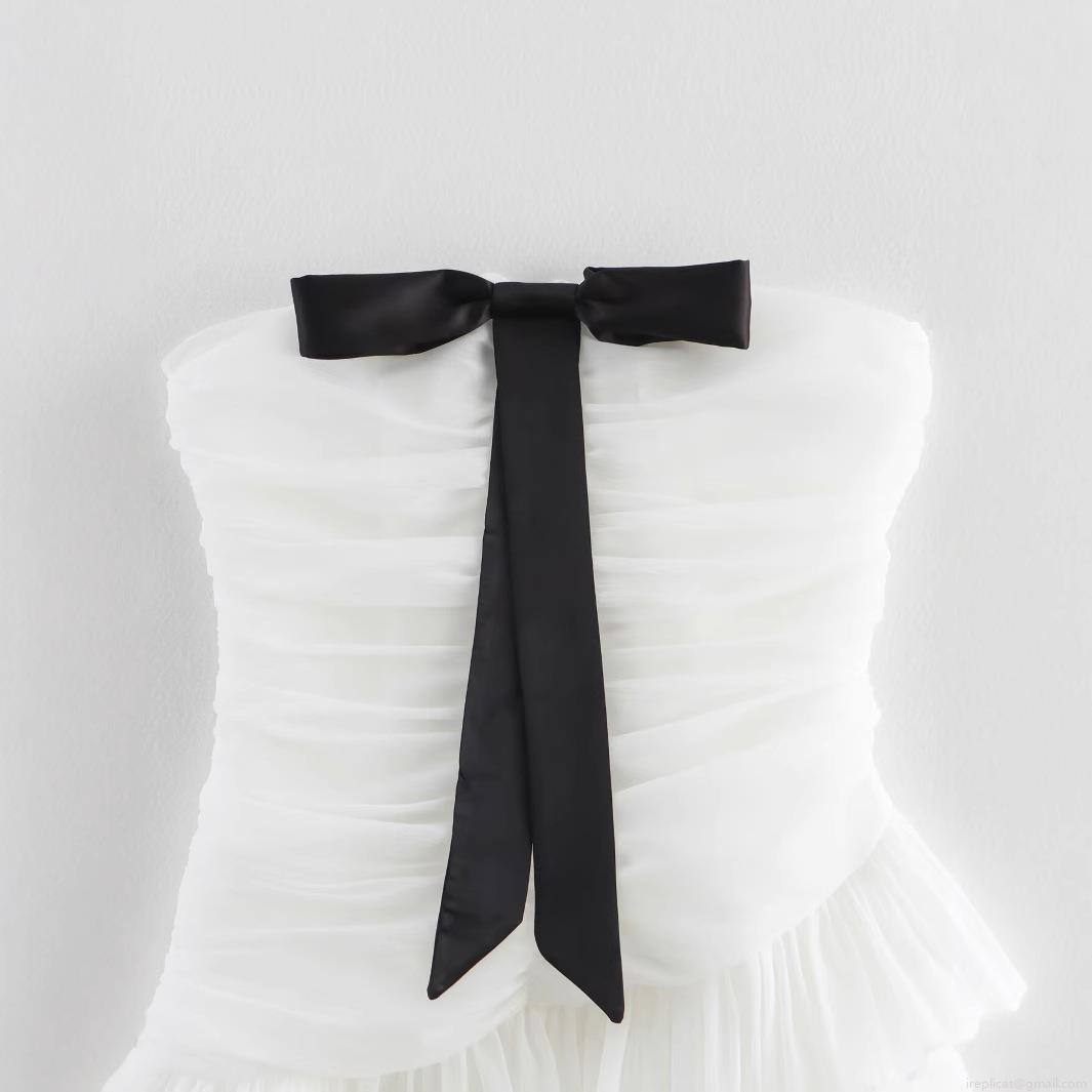 • Women's Elegant Strapless Mini Dress With Large Black Bow Sexy Tiered Ruffle Polyester Chiffon Party Dress For Summer Wedding Night Out Street Style