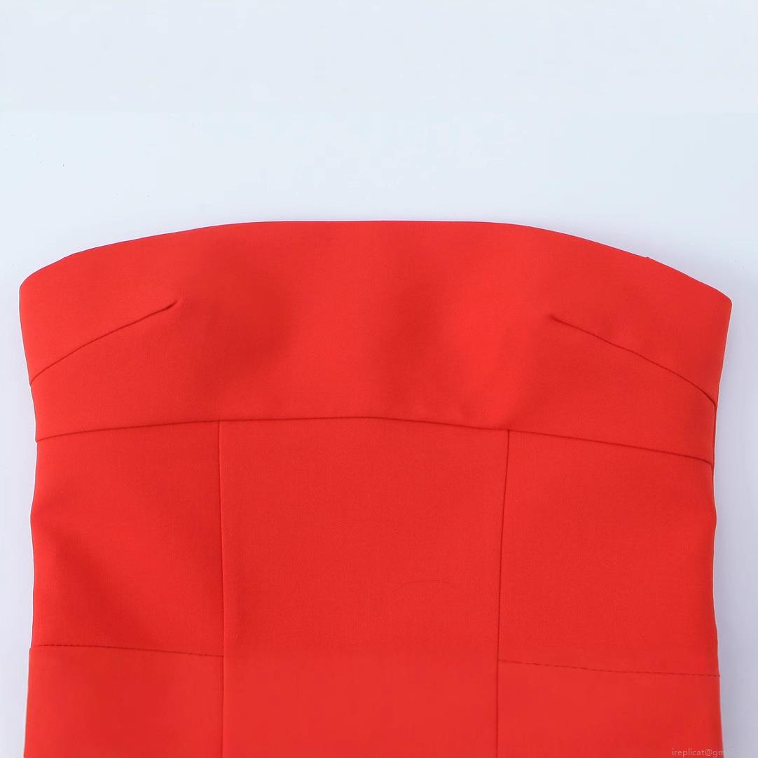 • Women's Elegant Strapless Red Mini Dress Sexy Tube Top Bodycon Party Dress with Decorative Pocket Flaps Back Invisible Zipper Slim Fit Evening Clubwear