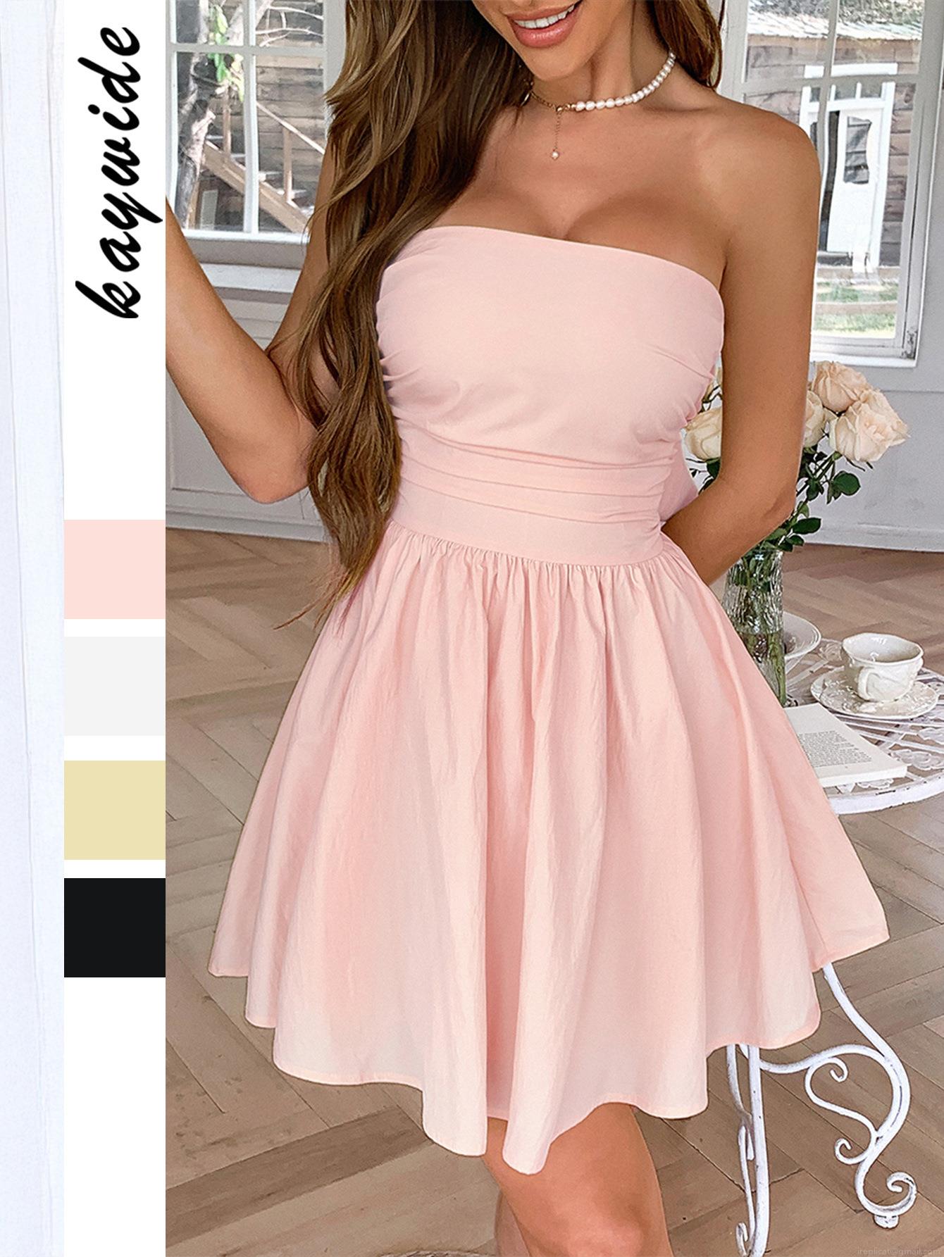 • Women's Elegant Tube Top Mini Dress Bowknot Backless A-Line Woven Polyester Blend Sexy Summer Party Cocktail Dress For Women Solid Color