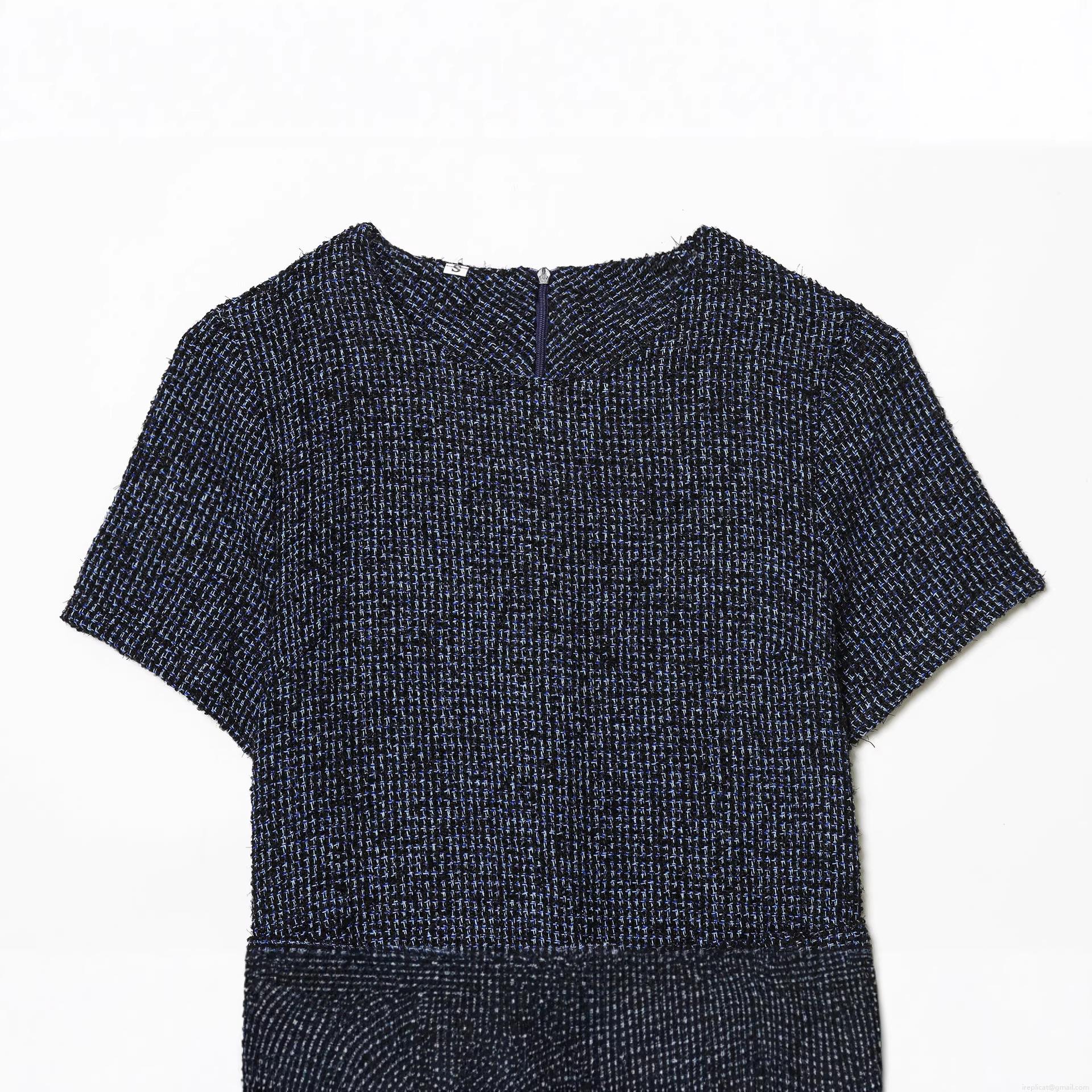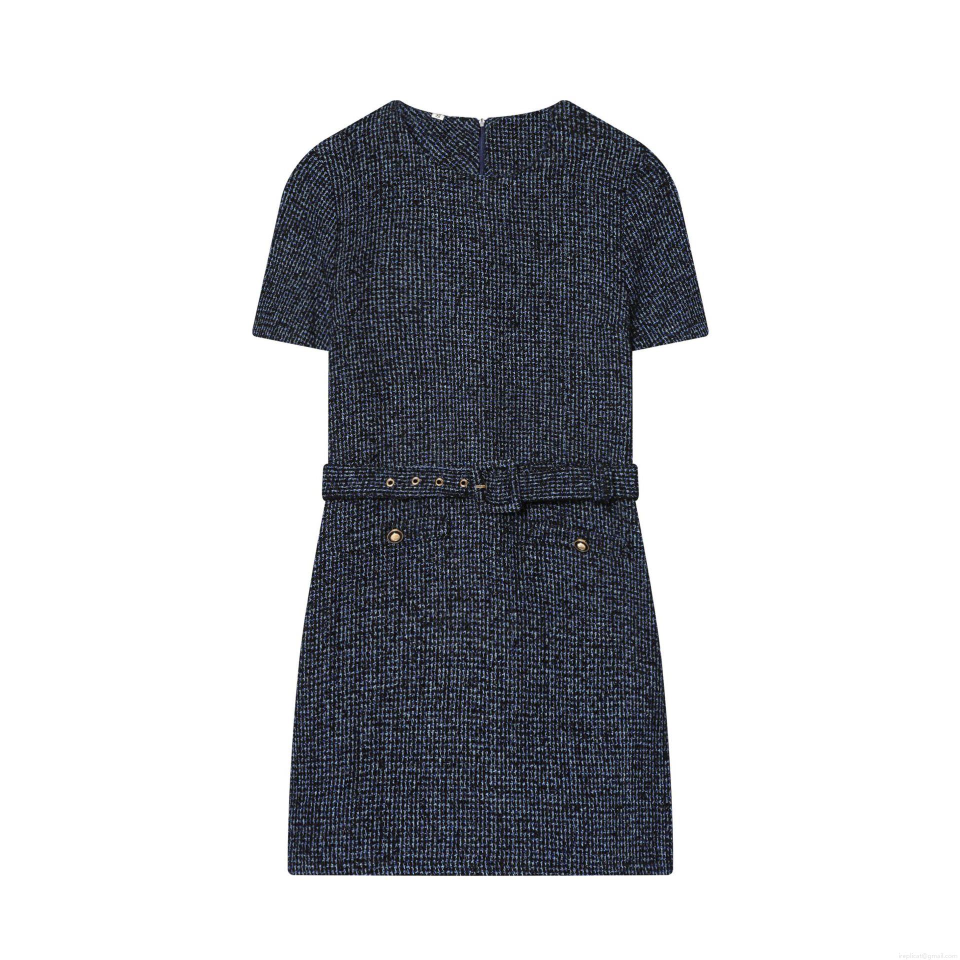 • Women's Elegant Tweed Short Sleeve Mini Dress With Belt Round Neck Textured Polyester Dress For Party Office Gold Button Decor