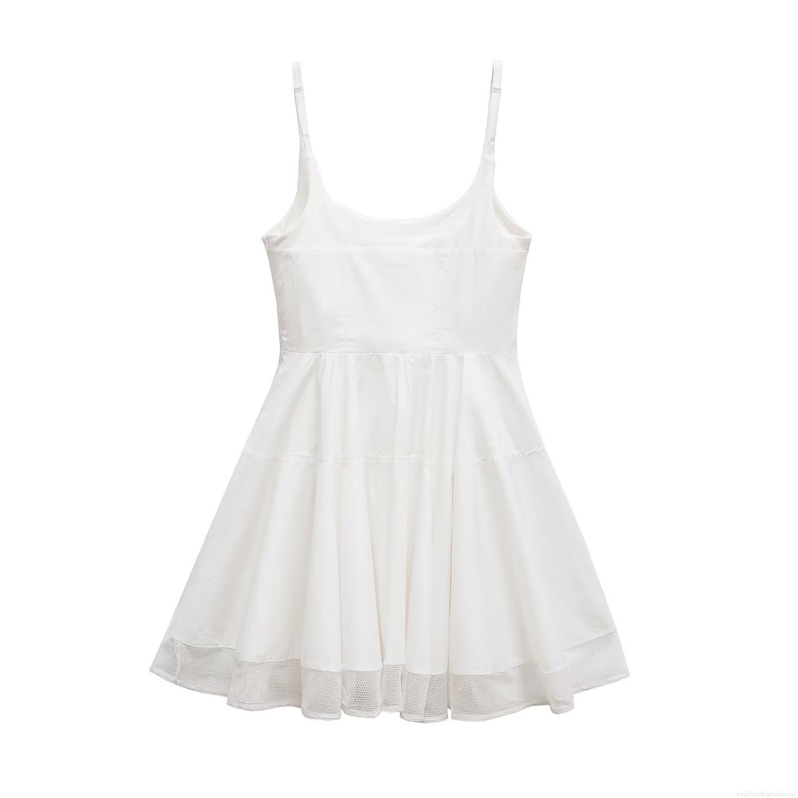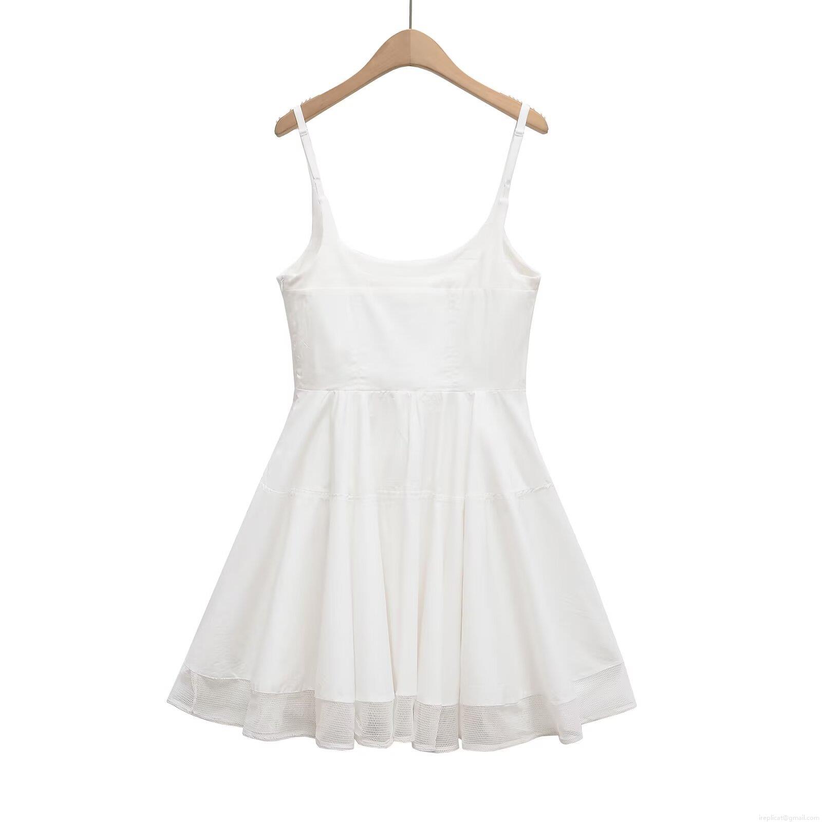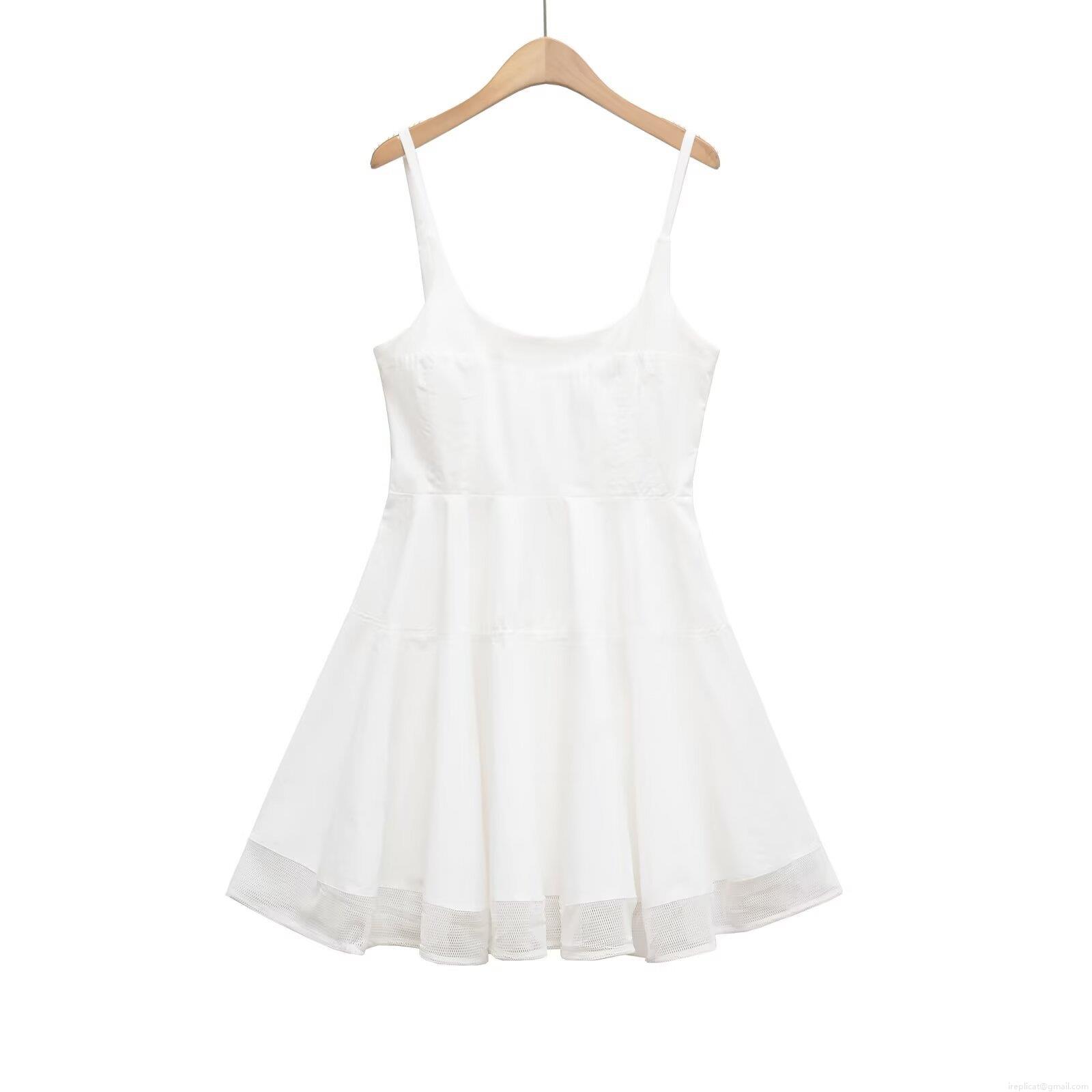 • Women's Elegant U-Neck White Camisole Dress Sleeveless Waist Cinching A-Line Mini Dress With Mesh Splicing Hem Slim Fit Summer Party Club Wear For Lady