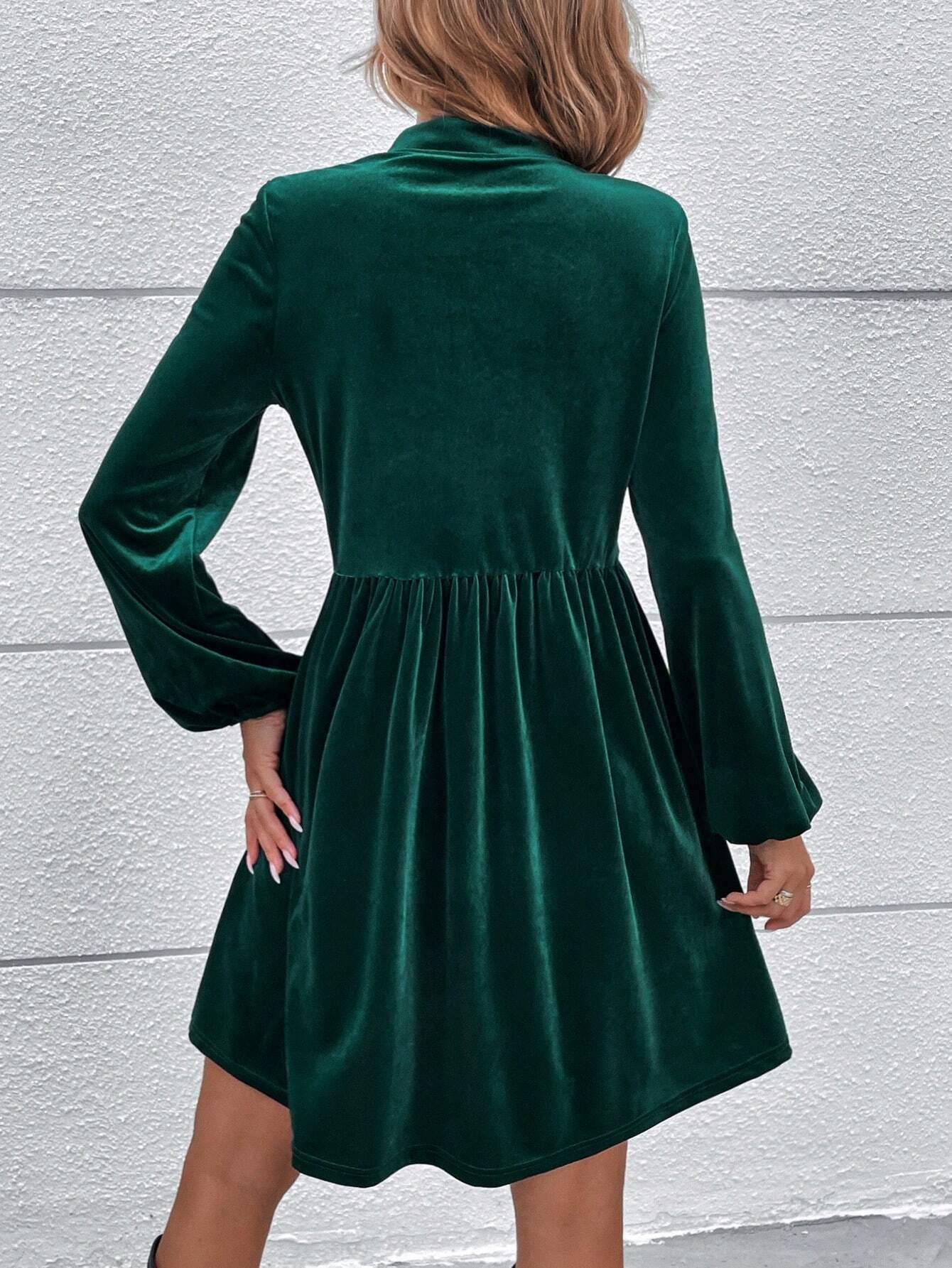 • Women's Elegant Velvet V Neck Mini Dress With Long Bubble Sleeve And Tassel Drawstring Waist-Cinching A-Line Swing Party Dress For Autumn Winter