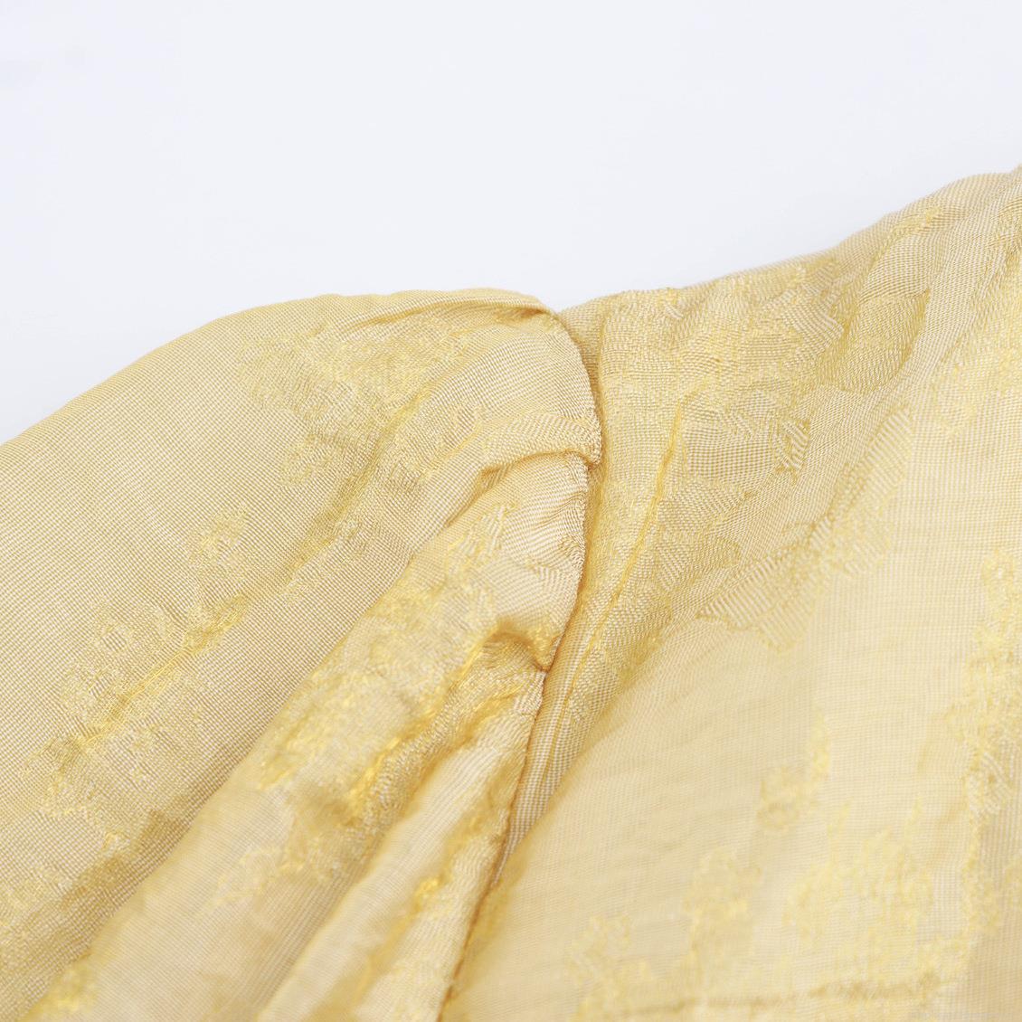 Solid Color, Jacquard, Pleats, Waist shaping, V-neck, Lantern Sleeves