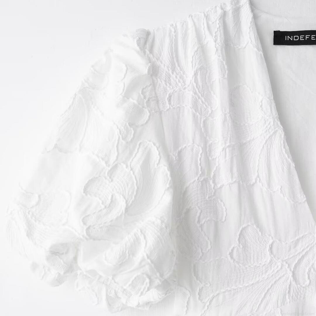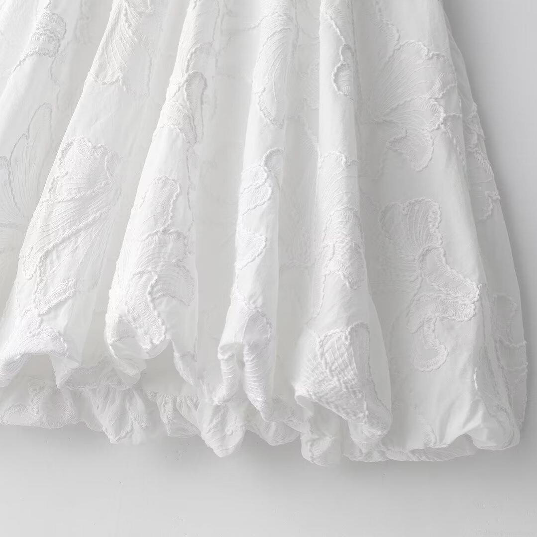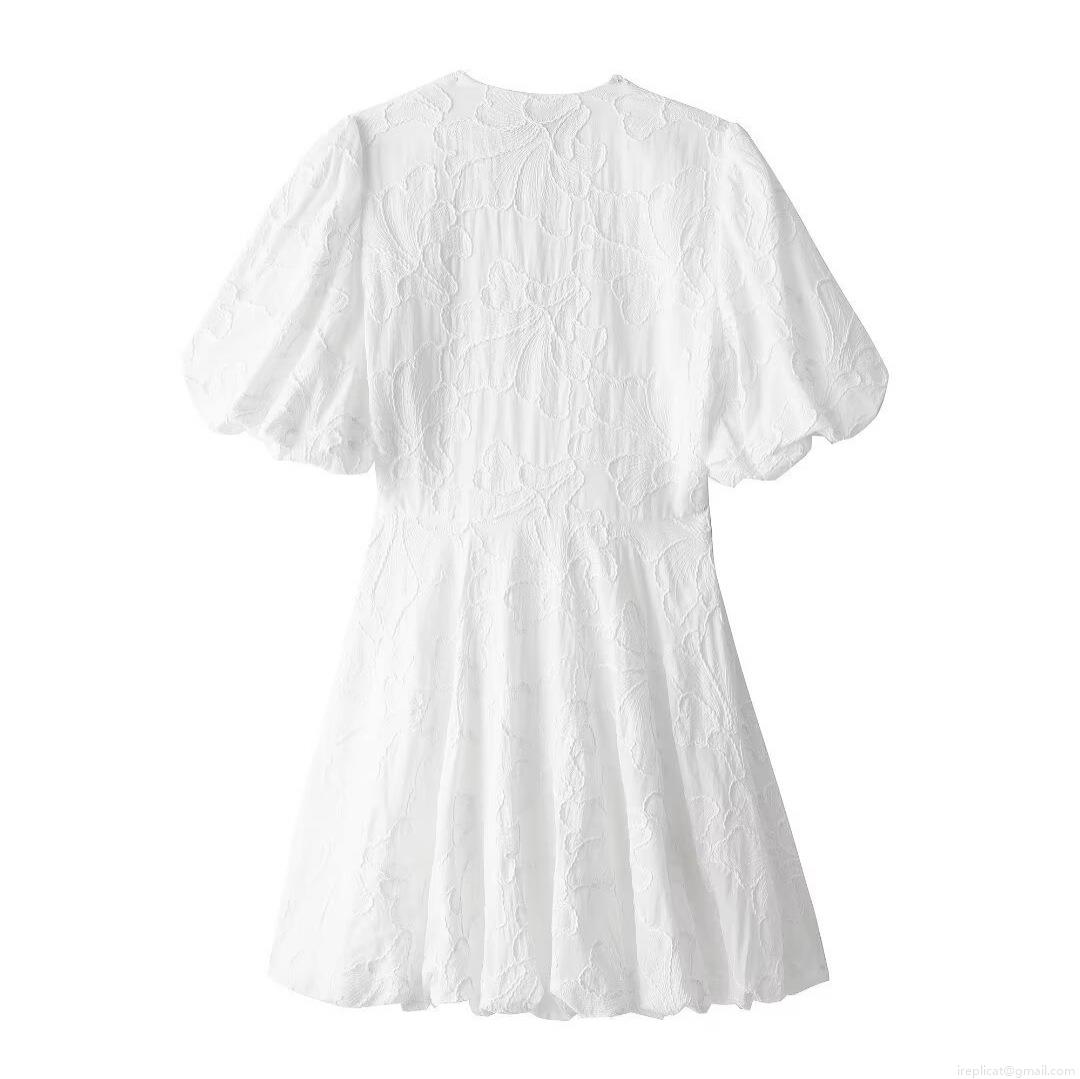 Women's Elegant V-Neck Puff Sleeve Mini Dress Floral Embroidery Jacquard White Summer Party Dress French Style Sweet Lady Short Dress
