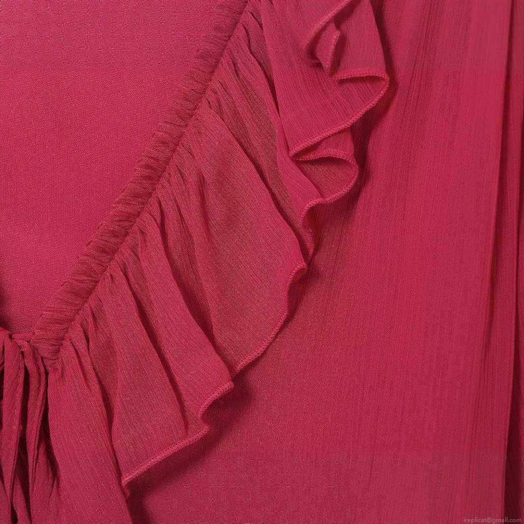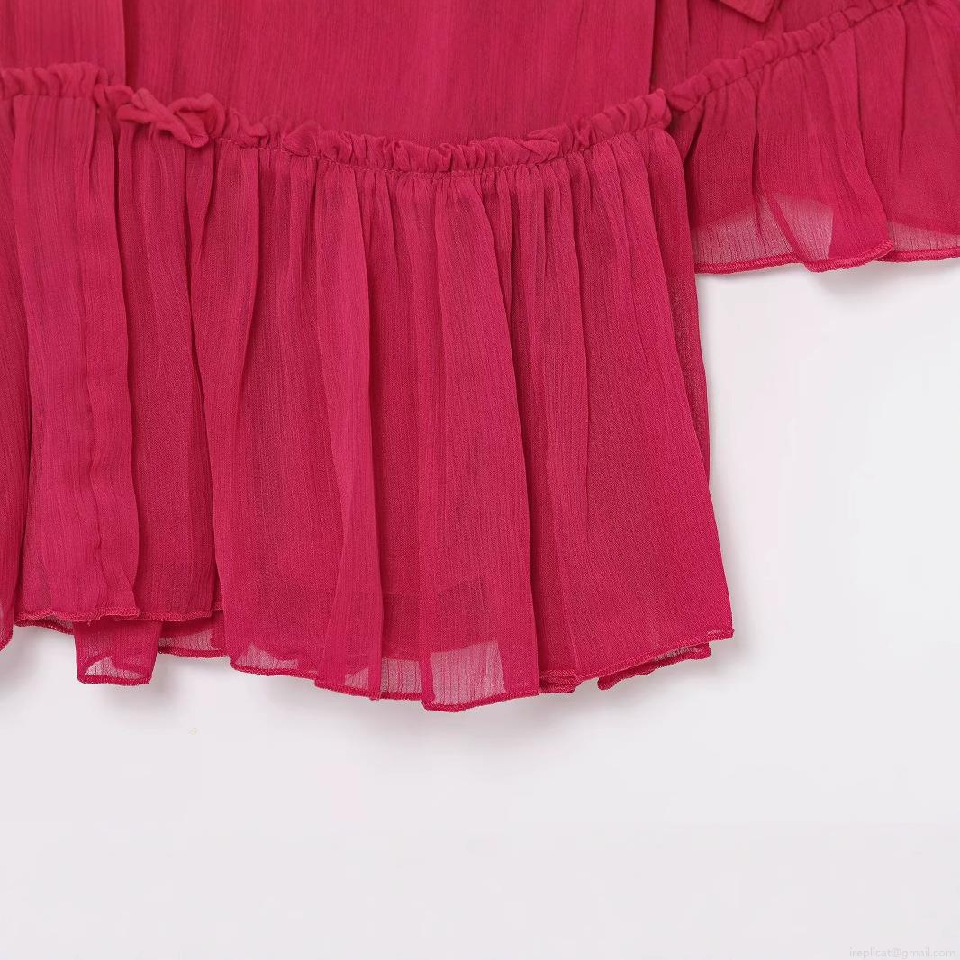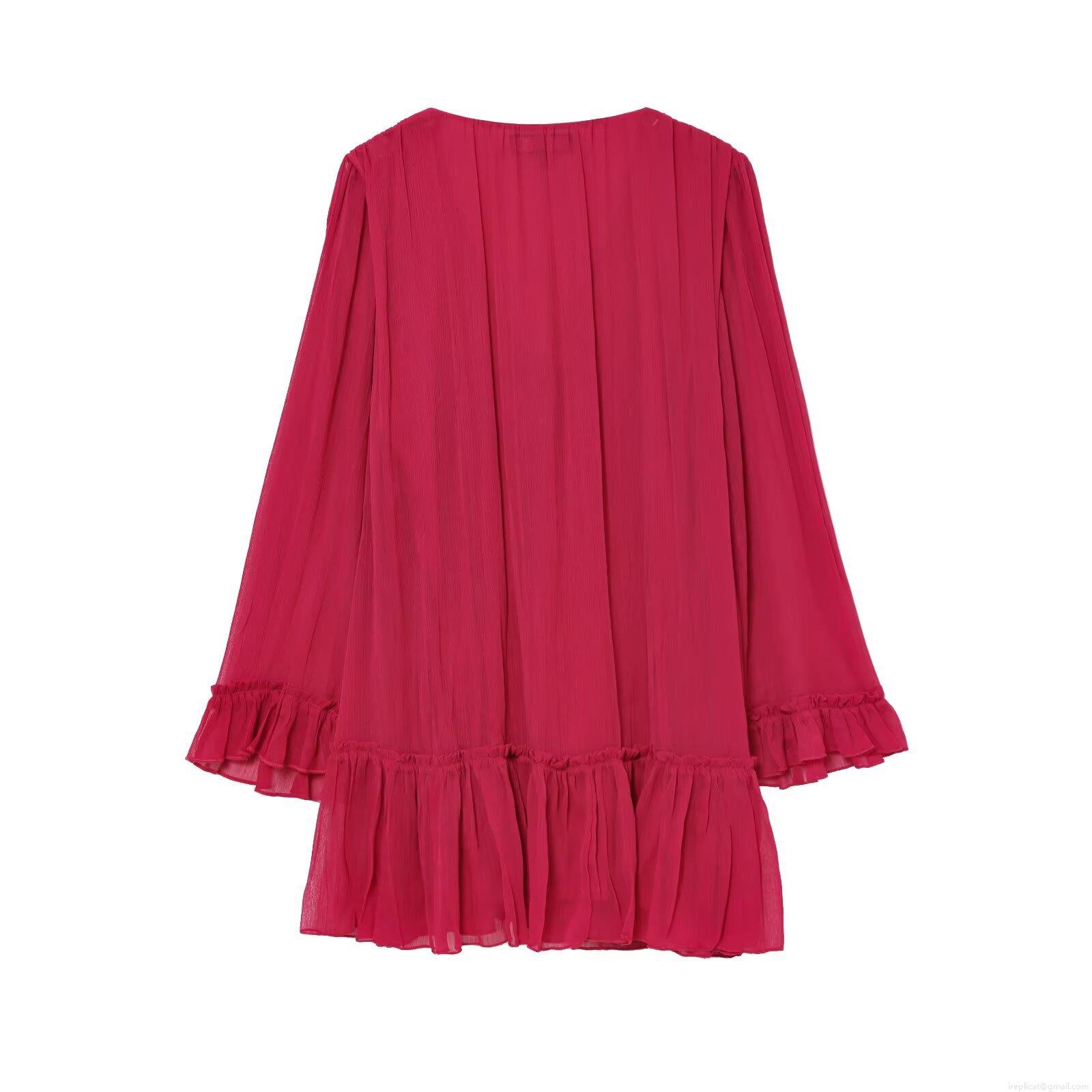 • Women's Elegant V-Neck Ruffle Pleated Long Sleeve Dress Solid Color Magenta Chiffon Crepe A-Line Mini Dress With Tassel Drawstring For Party Dating