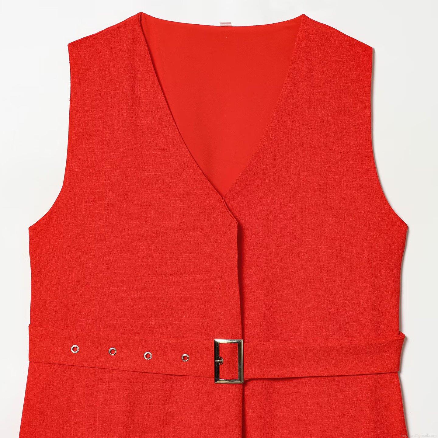 • Women's Elegant V-Neck Sleeveless Blazer Dress with Adjustable Belt Solid Color Slim Fit Bodycon Mini Vest Dress for Office Party Daily Wear
