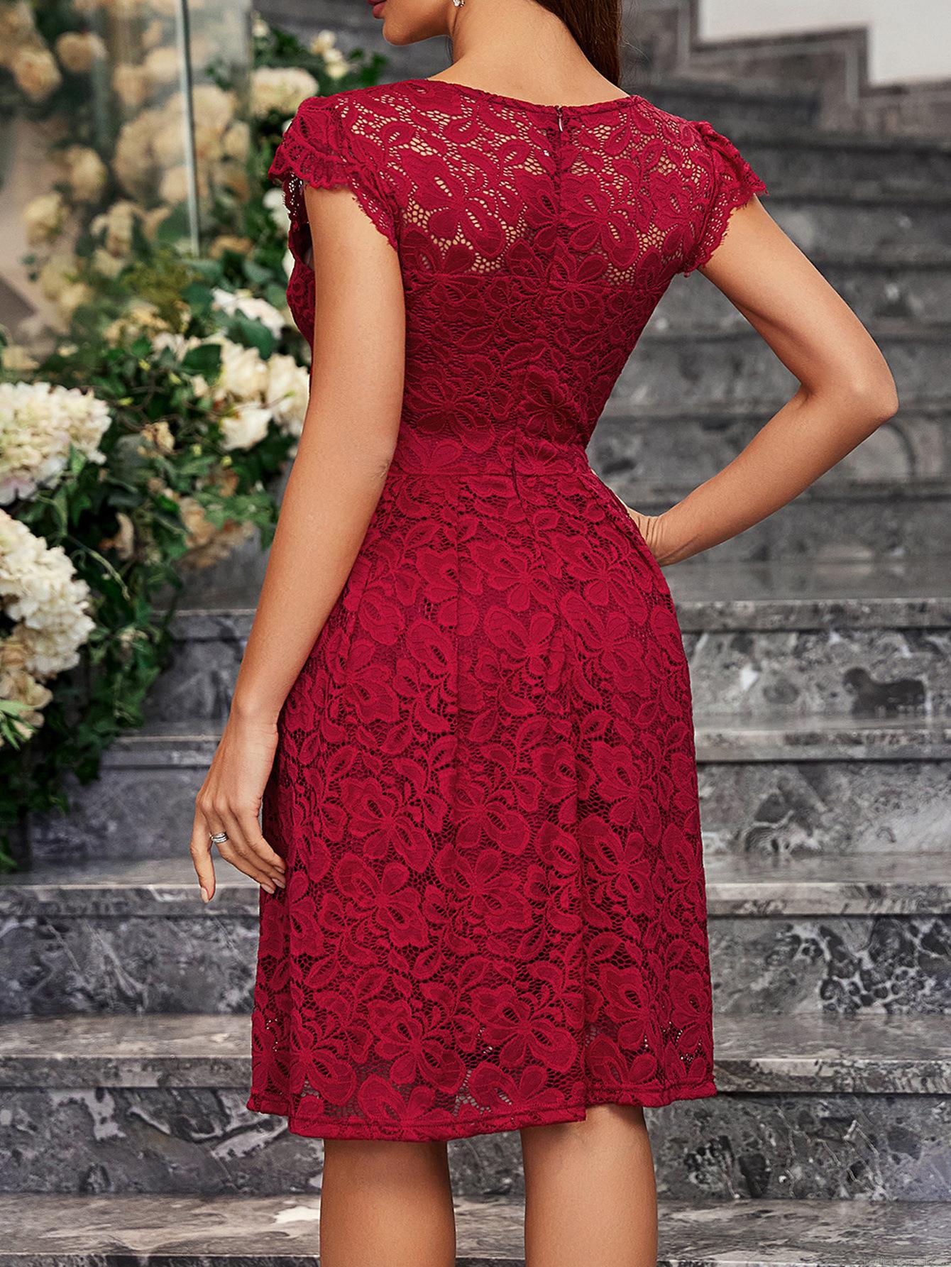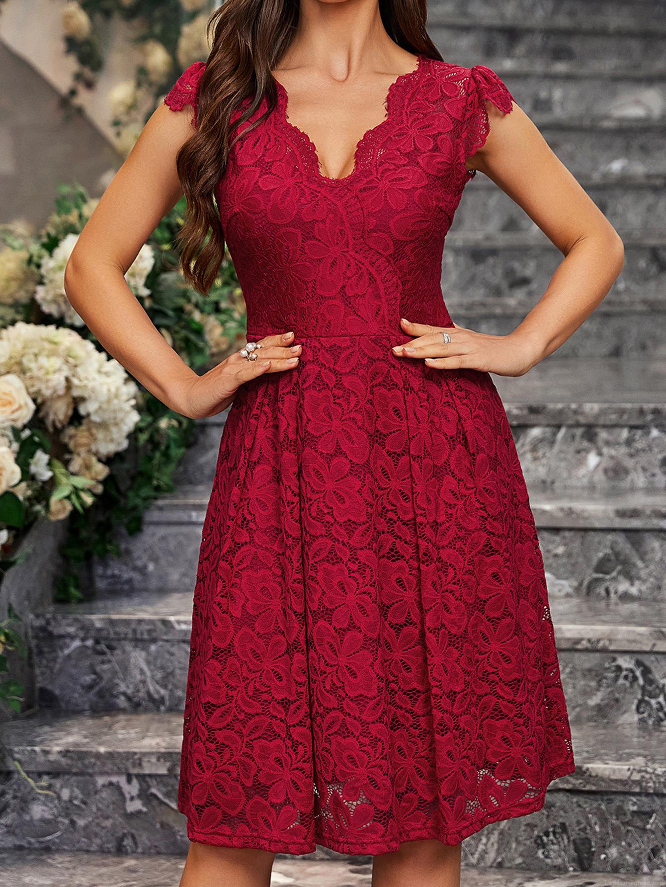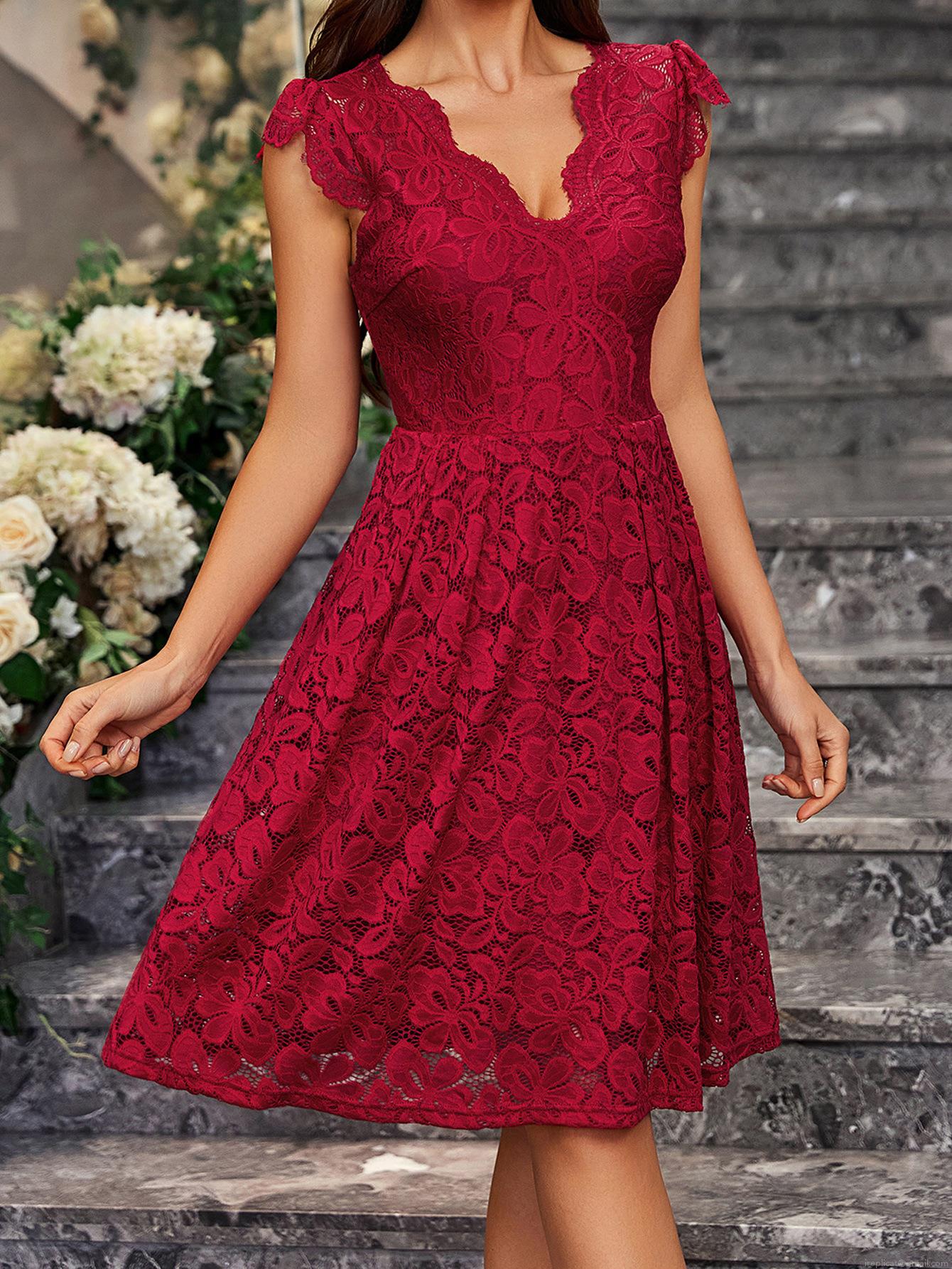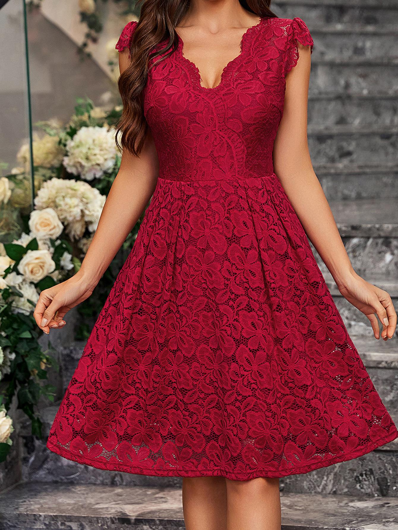 • Women's Elegant V-Neck Sleeveless Lace Mini Dress Wine Red A-Line Homecoming Prom Cocktail Party Dress Made Of Polyester And Spandex
