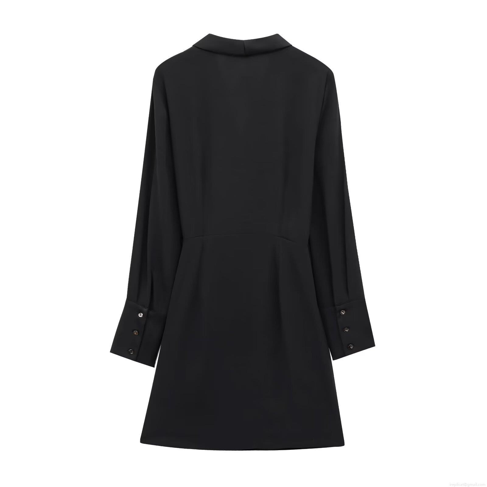 • Women's Elegant V-Neck Wrap Short Dress Long Sleeve Tie Waist Bow Decor Solid Black Polyester Mini Dress For Office Casual Party Streetwear