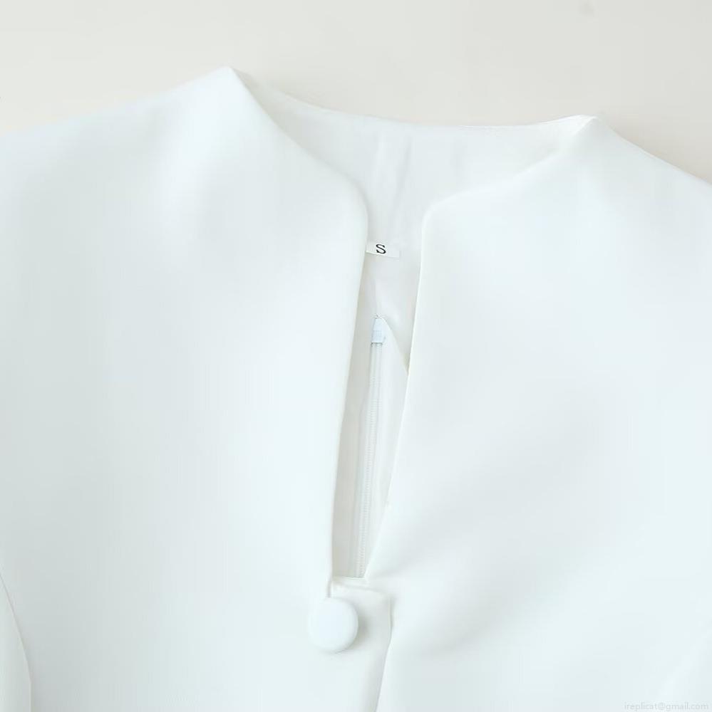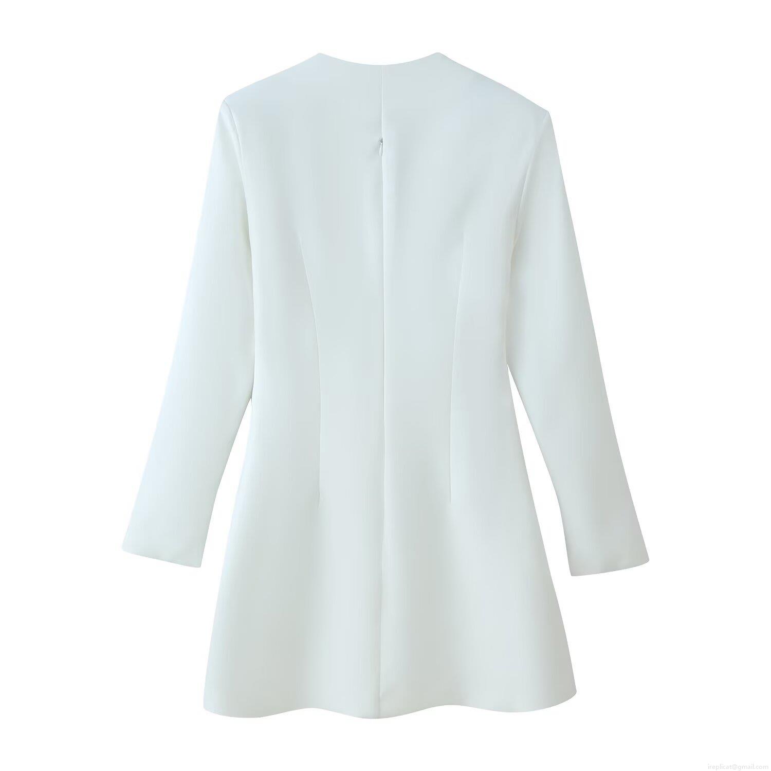• Women's Elegant White Standing Collar Button Decor Slim Fit Long Sleeve Mini Dress Solid Color Stretch Polyester Spandex A-Line Dress for Commuter Dating